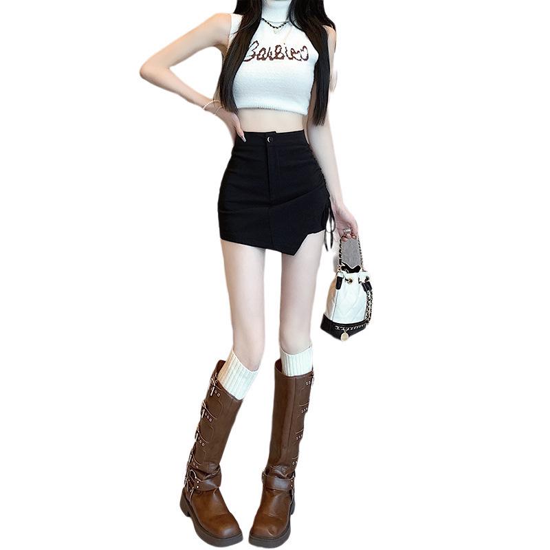 Женский комплект 2024 года: шорты с высокой посадкой и эластичный топ, юбка с неровным краем на кулиске - облегающий крой, летний стиль