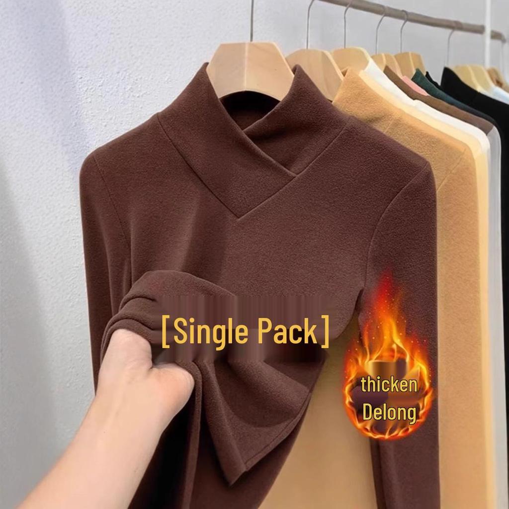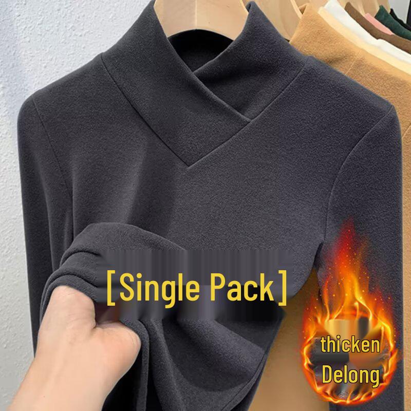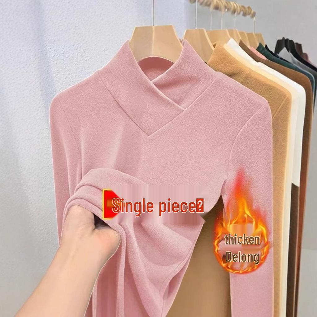 Женский бархатный топ с полуворотником, длинным рукавом и облегающего кроя для осени/зимы
