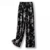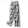 Женские летние брюки из ледяного шелка в клетку с широкими штанинами - Черно-белые с прямыми штанинами