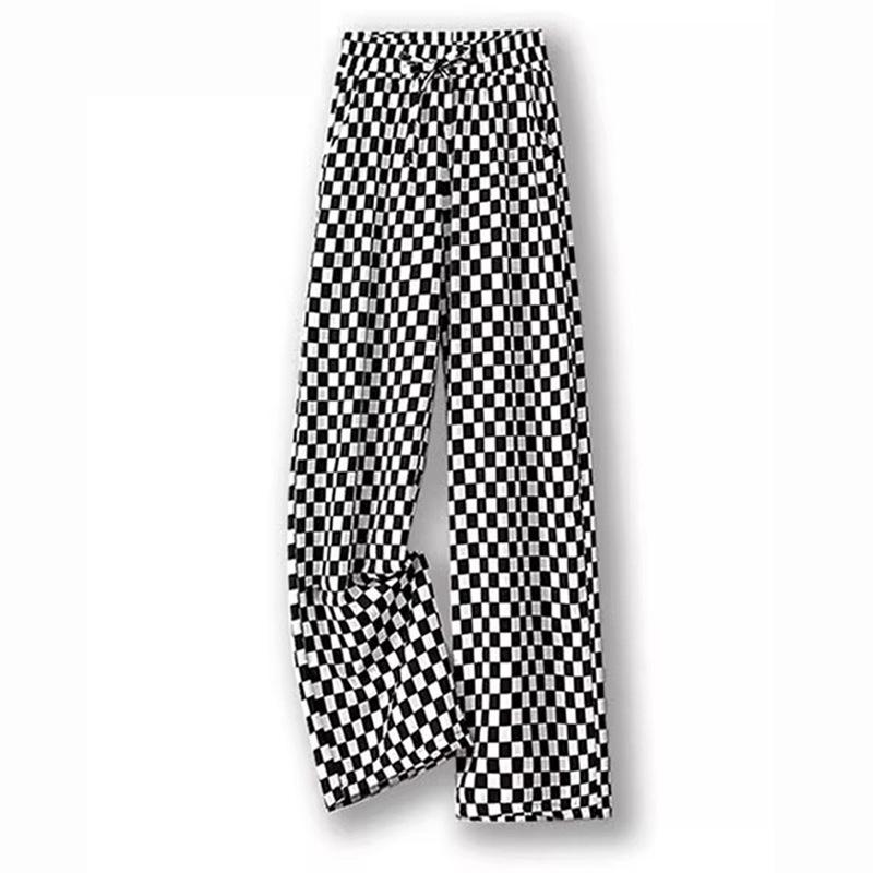 Женские летние брюки из ледяного шелка в клетку с широкими штанинами - Черно-белые с прямыми штанинами — купить товар онлайн с бесплатной доставкой по всему миру!
