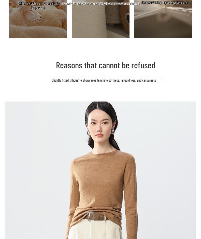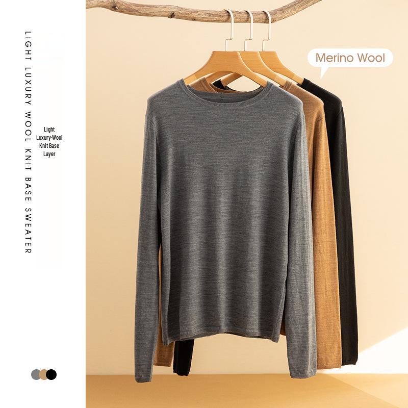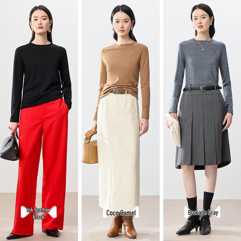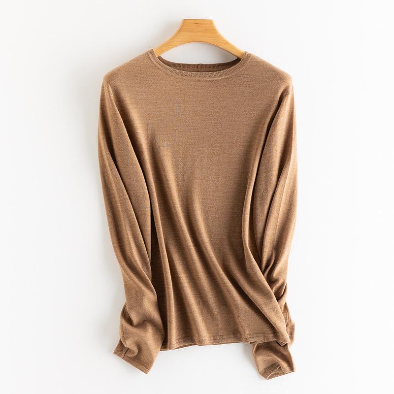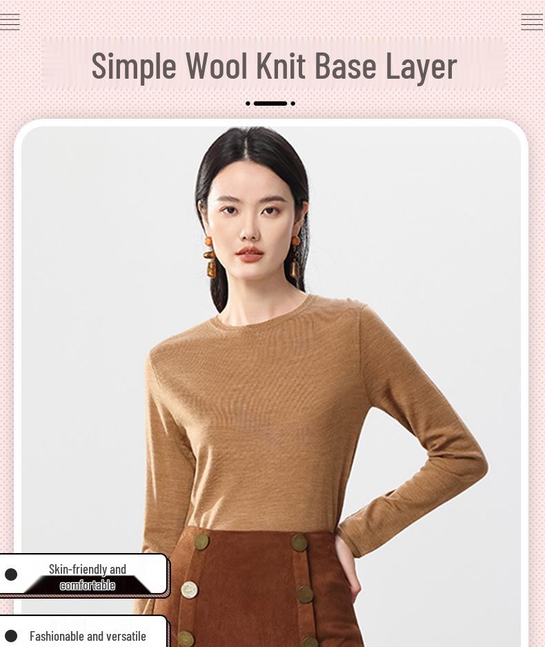 Женский трикотаж Yu Yue Chunqiu из 100% шерсти с круглым вырезом, мягкий базовый слой