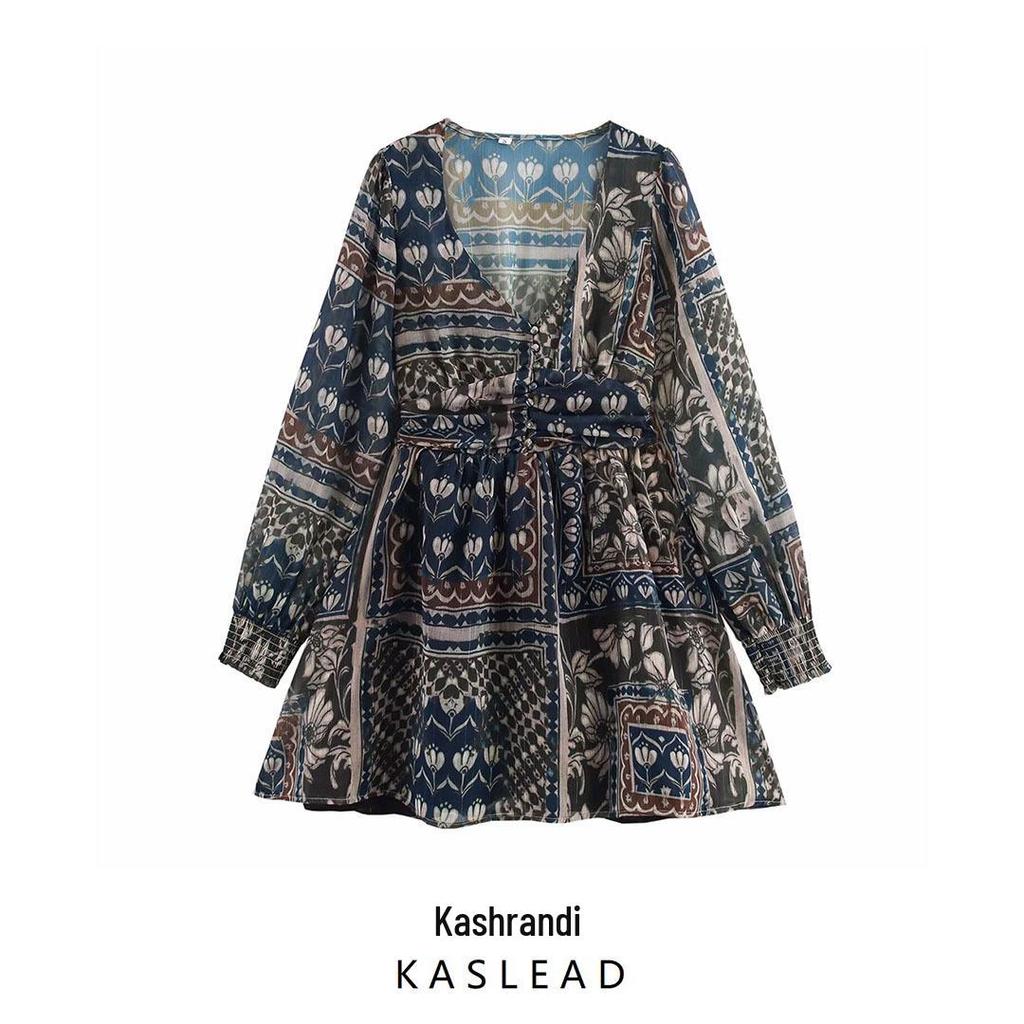Женское мини-платье с принтом металлизированной нитью на весну 2025 года - Европейский и американский стиль