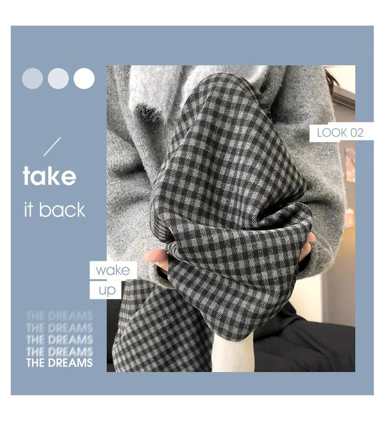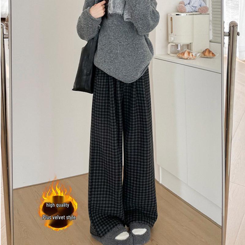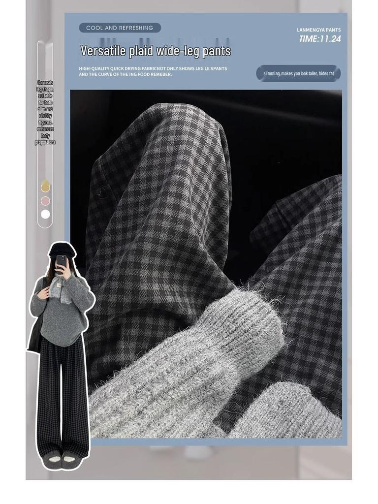 Пополните свой осенне-зимний гардероб этими шикарными брюками широкого кроя на флисовой подкладке.. Эти брюки, выполненные в спортивном корейском стиле, имеют высокую посадку для создания привлекательного силуэта.. Клетчатый узор из смесовой шерсти добавляет нотку классической элегантности, а добавление спандекса обеспечивает комфорт и гибкость в течение всего дня.. Идеальные для прохладного времени года, эти брюки легко сочетают в себе стиль и тепло.