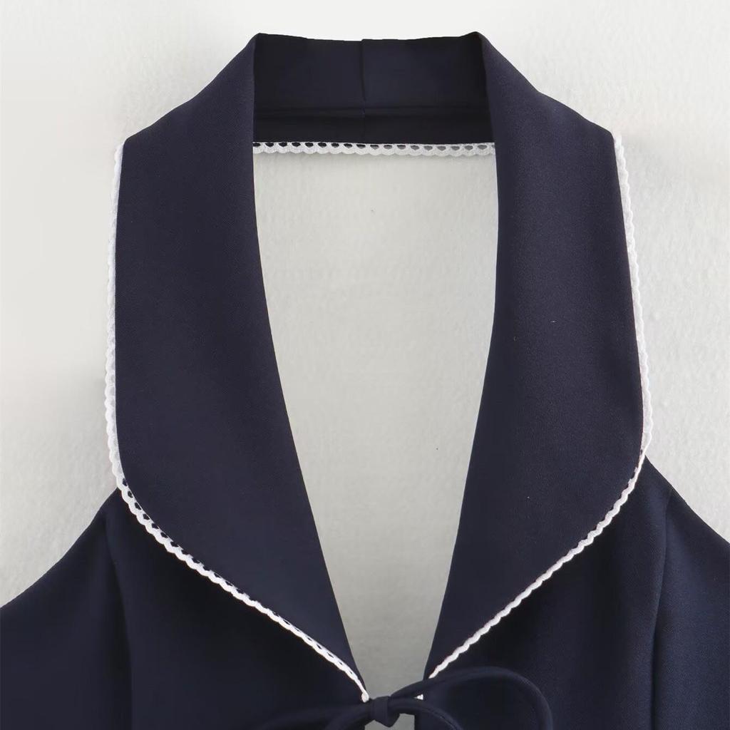 Весна 2025 Женский милый топ-халтер с открытой спиной, бантом и пэчворк V-образным вырезом