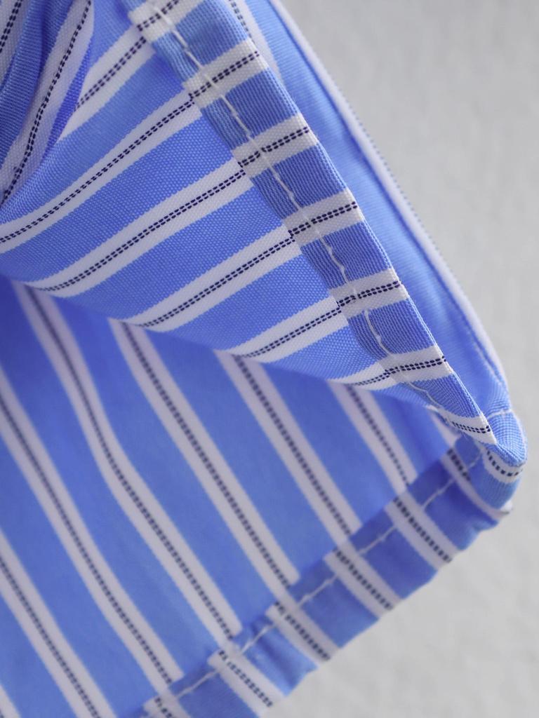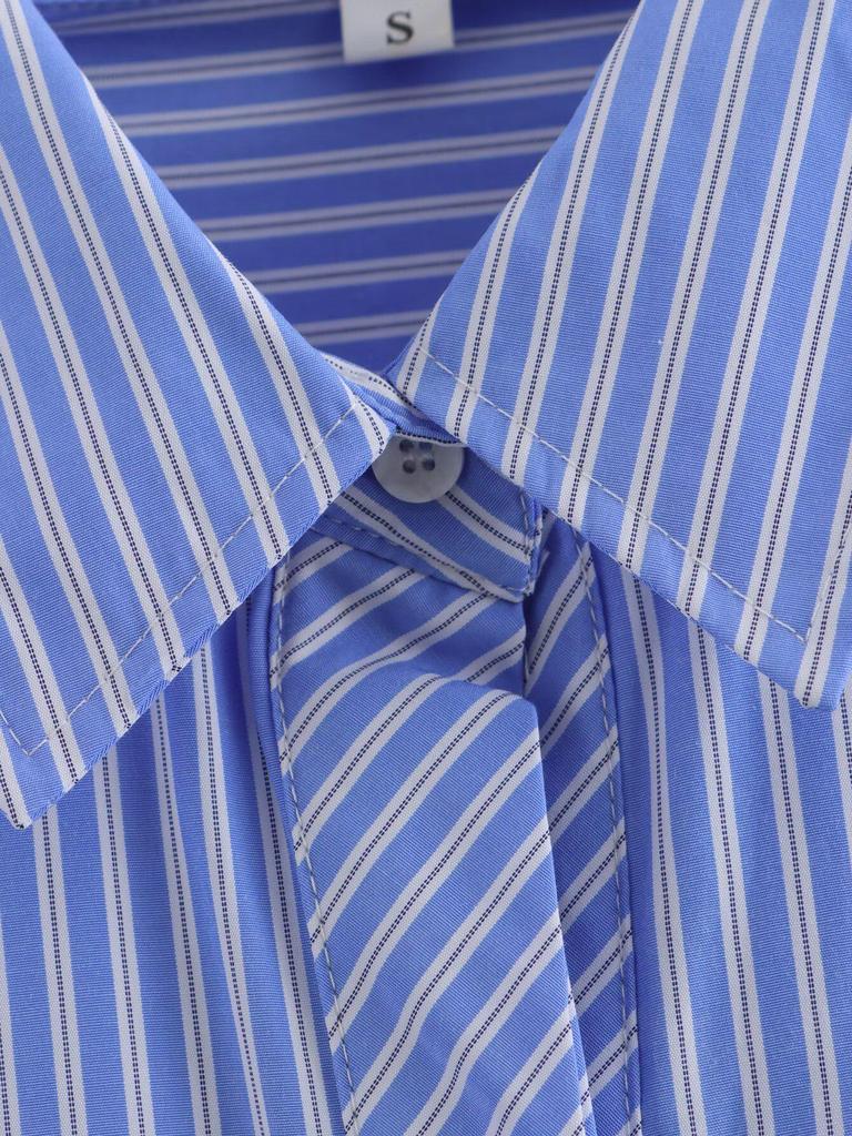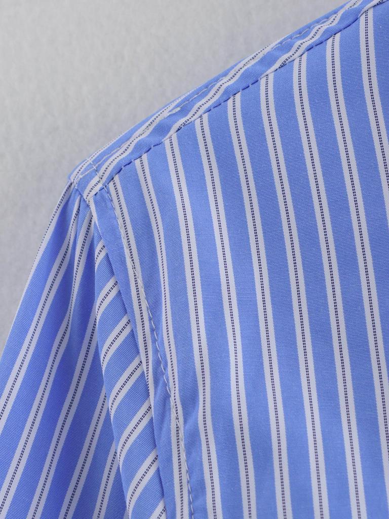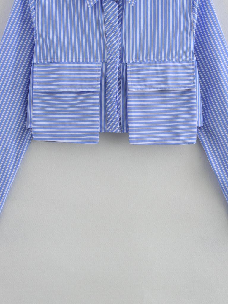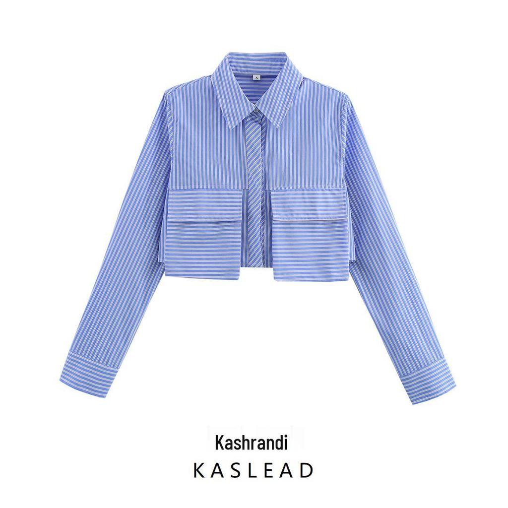 2025 Spring Women's European & American Style Blue Striped Shirt with Versatile Pocket