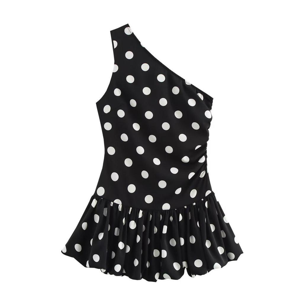 Весна 2025 Женское Европейский и Американский Стиль Платье Бодикон на Одно Плечо в Горошек
