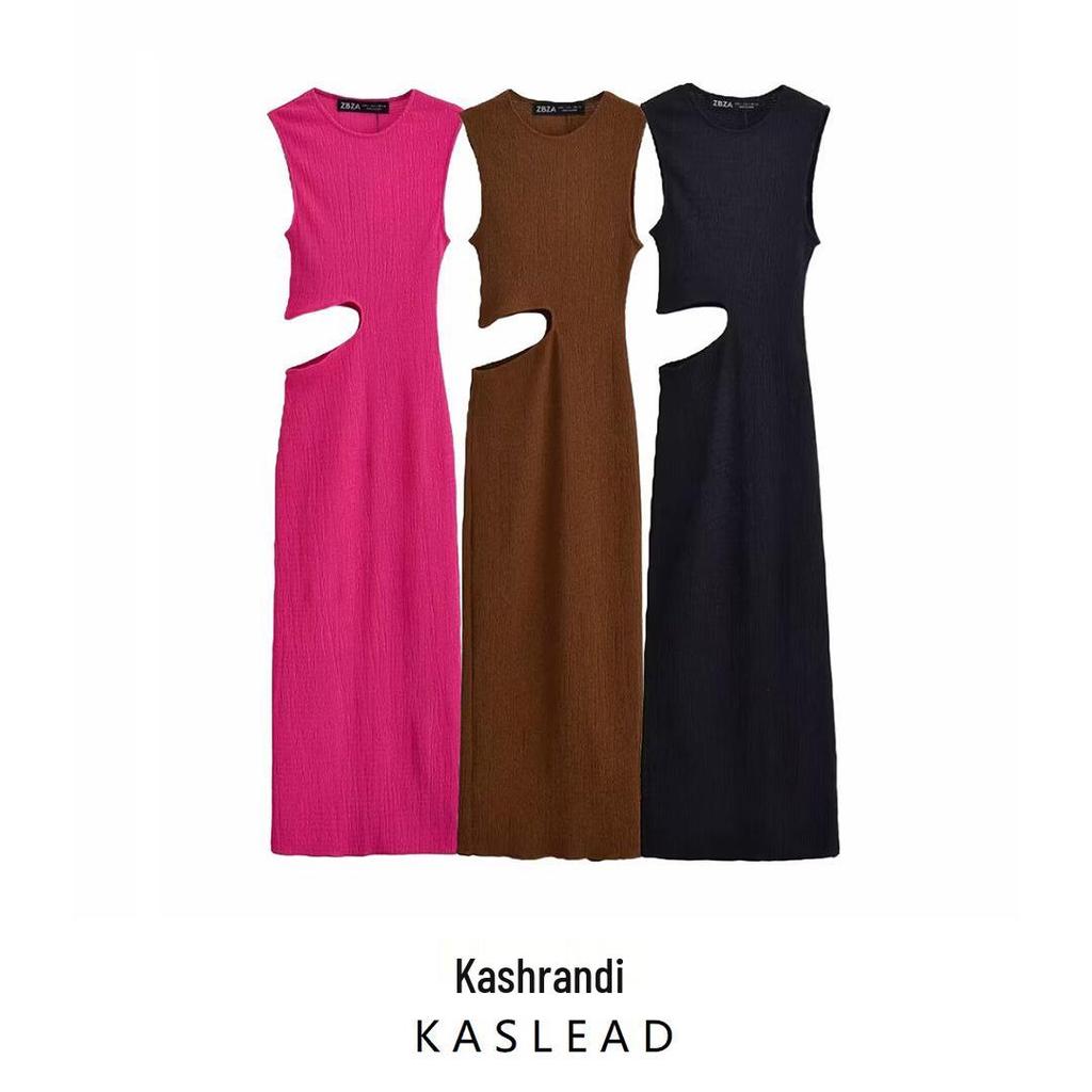 2025 Весна Женское Европейский и Американский Стиль Эластичный Открытый Дизайн Длинное Платье