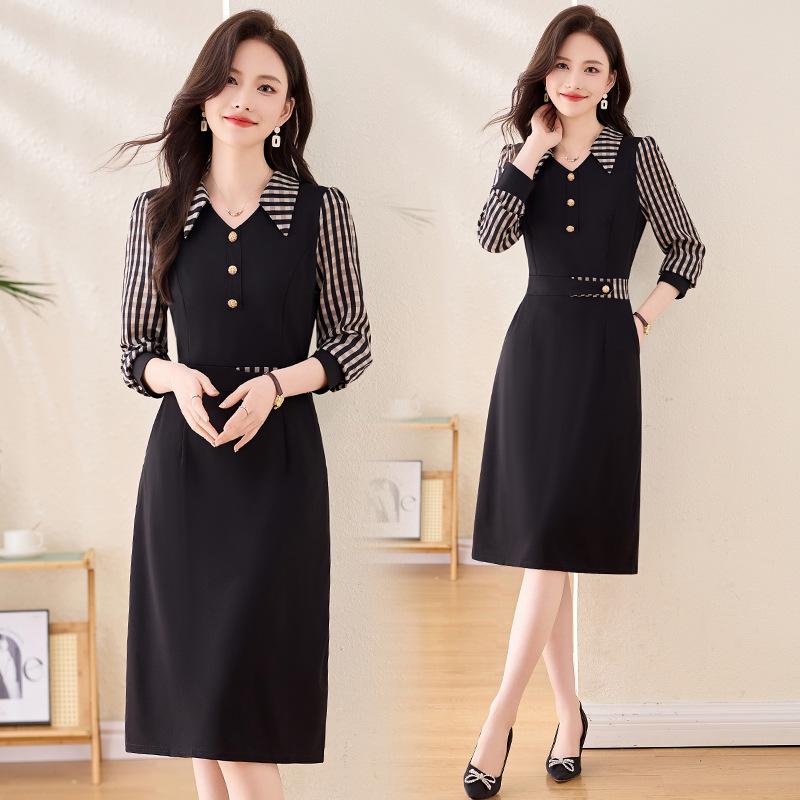 Весеннее клетчатое платье 2025: Женская стильная рубашка с отложным воротником, большого размера, с приталенным дизайном пэчворк (LX256)