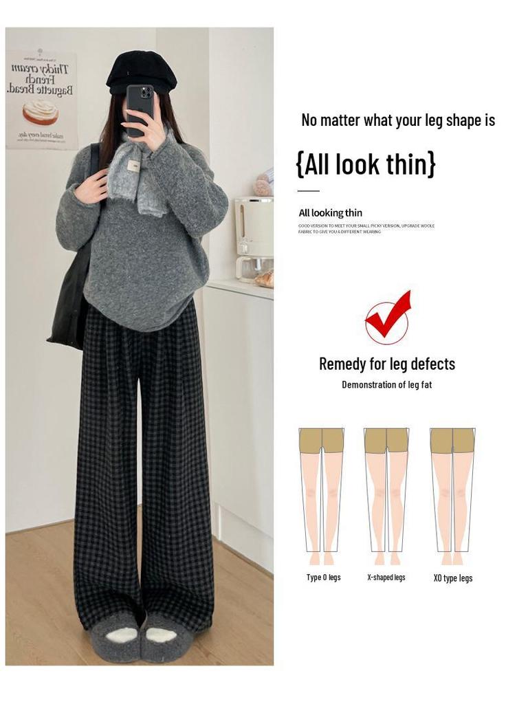 Experience the perfect blend of comfort and style with these high waist, wide-leg pants. Designed with a sporty flair, these pants feature a plaid pattern and are made from a durable spandex blend. The wool-blend fleece lining ensures warmth, making them ideal for cooler days. The pants are crafted to provide a retro aesthetic while maintaining a modern, relaxed fit. Ideal for those who appreciate both fashion and functionality in their wardrobe.