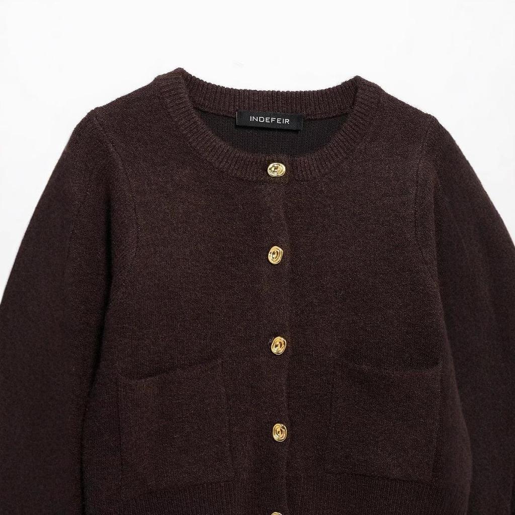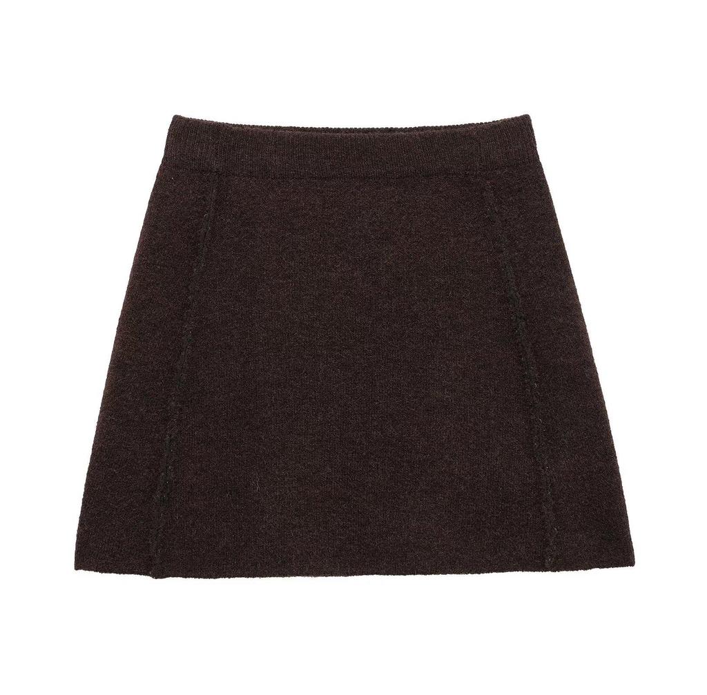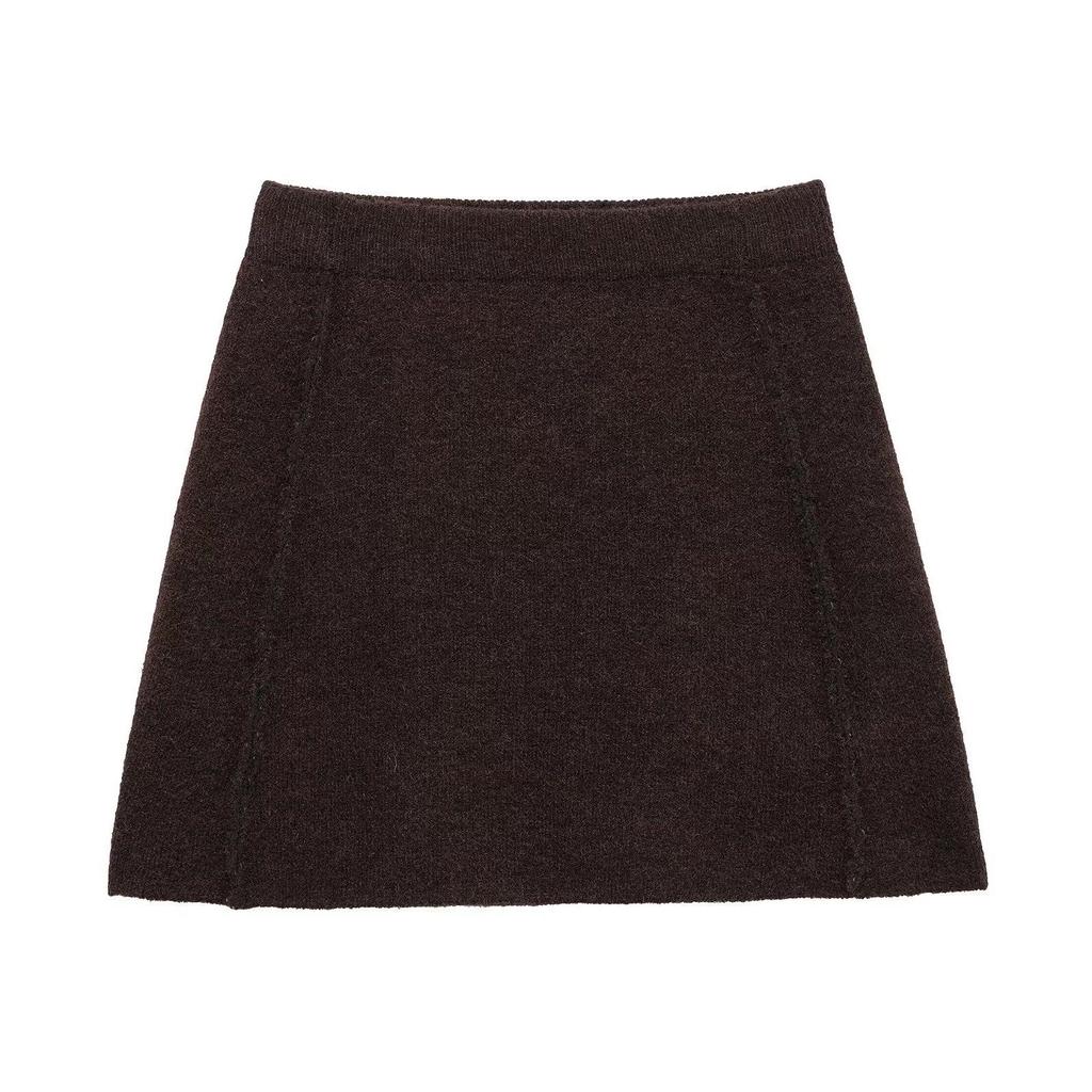 Зимний женский комплект в европейском и американском стиле: вязаный кардиган с круглым вырезом и длинными рукавами и юбка-полусолнце.