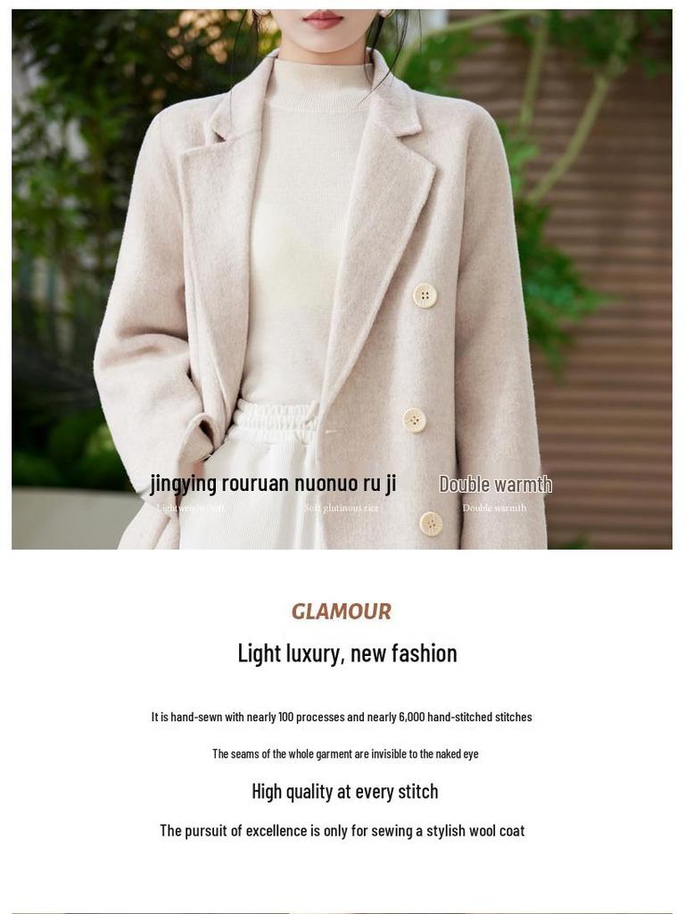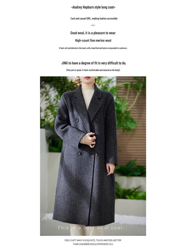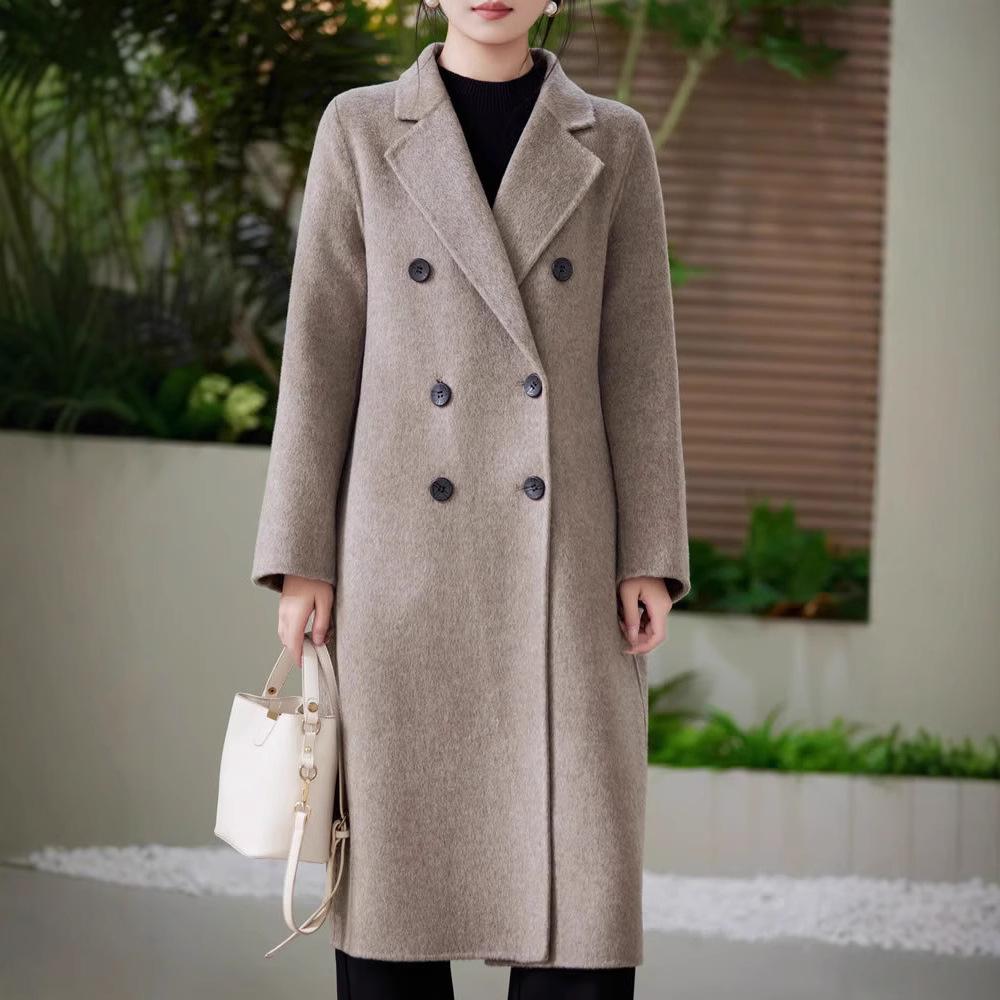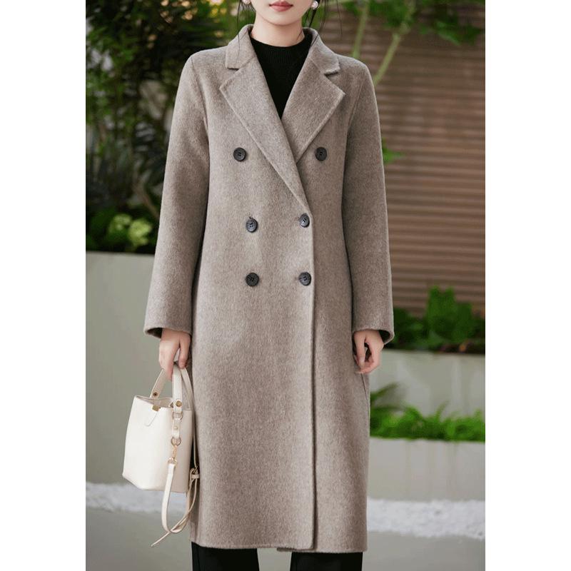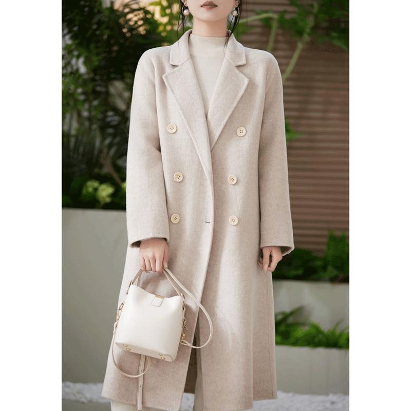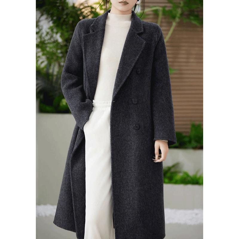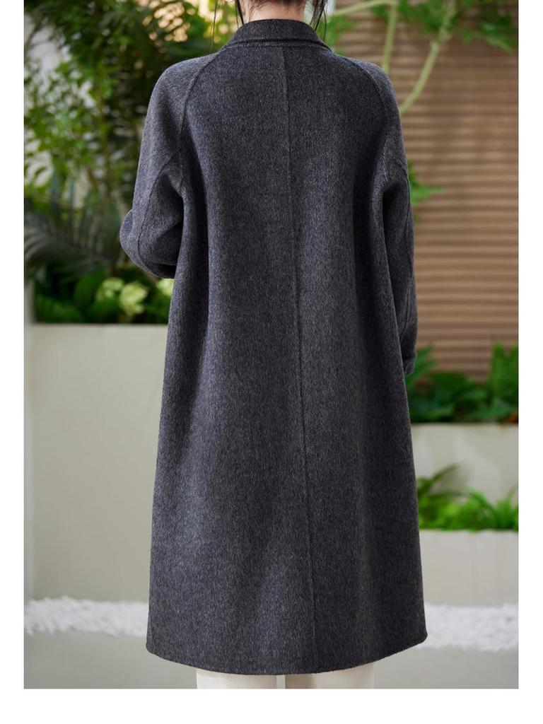 Женское двустороннее пальто оверсайз из 100% шерсти экстра-длины с лацканами пиджачного типа