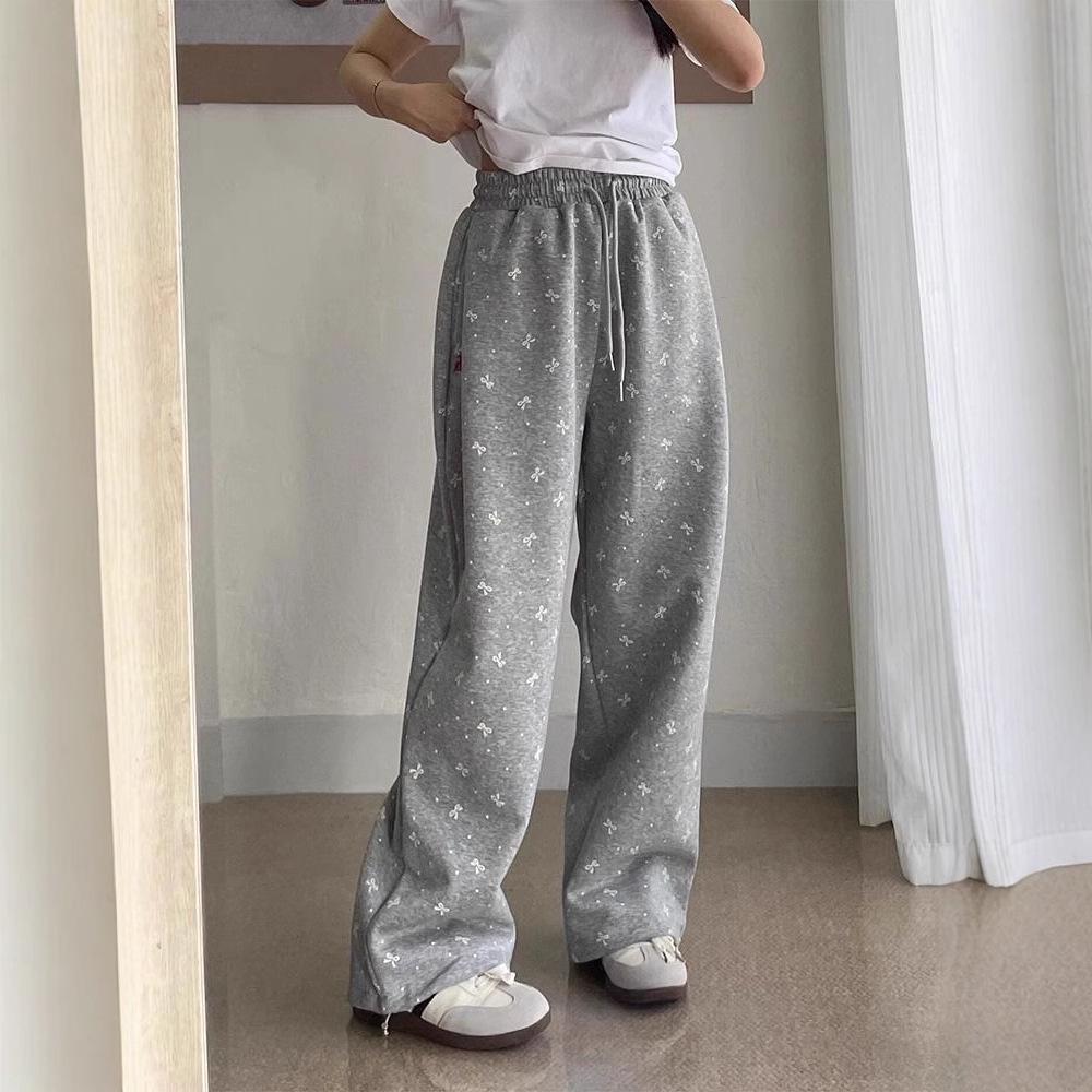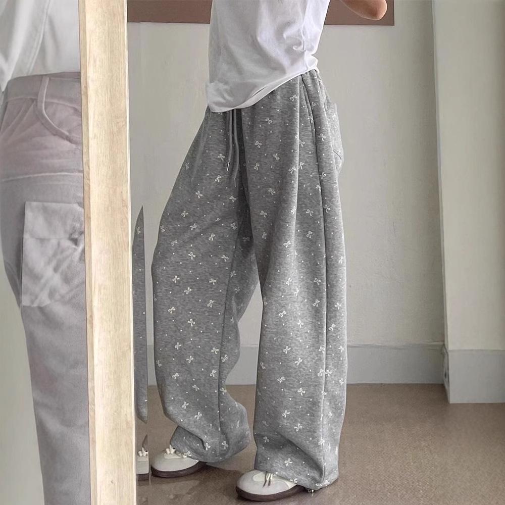 Трехмерный пояс Корейский Ретро Бант Горошек Широкие Серые Спортивные Штаны Женские Новый Осенне-Зимний Тренд.