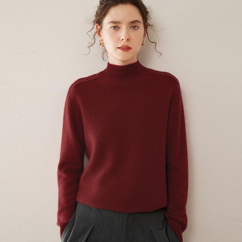 Женский кашемировый зимний свитер - Полувысокая горловина, Толстая вязка, Рукав реглан, Пуловер свободного кроя. — купить товар онлайн с бесплатной доставкой до всему миру!