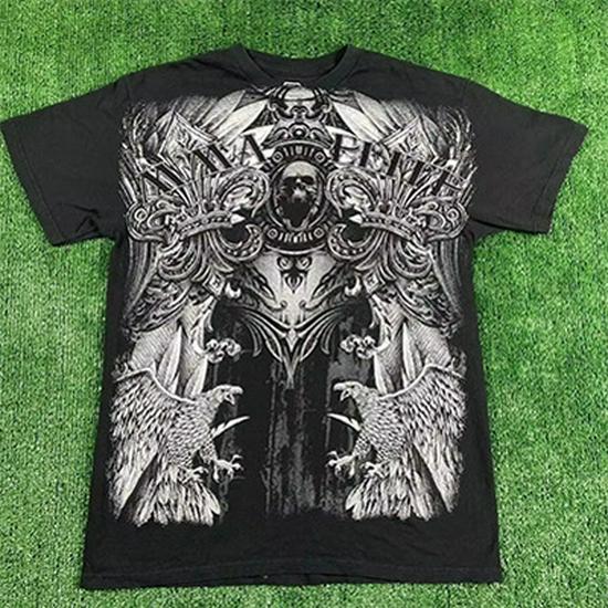 Ретро Футболка С Принтом Черепа Большого Размера Свободного Кроя - Темный Панк Y2K 90-е Уличная Одежда