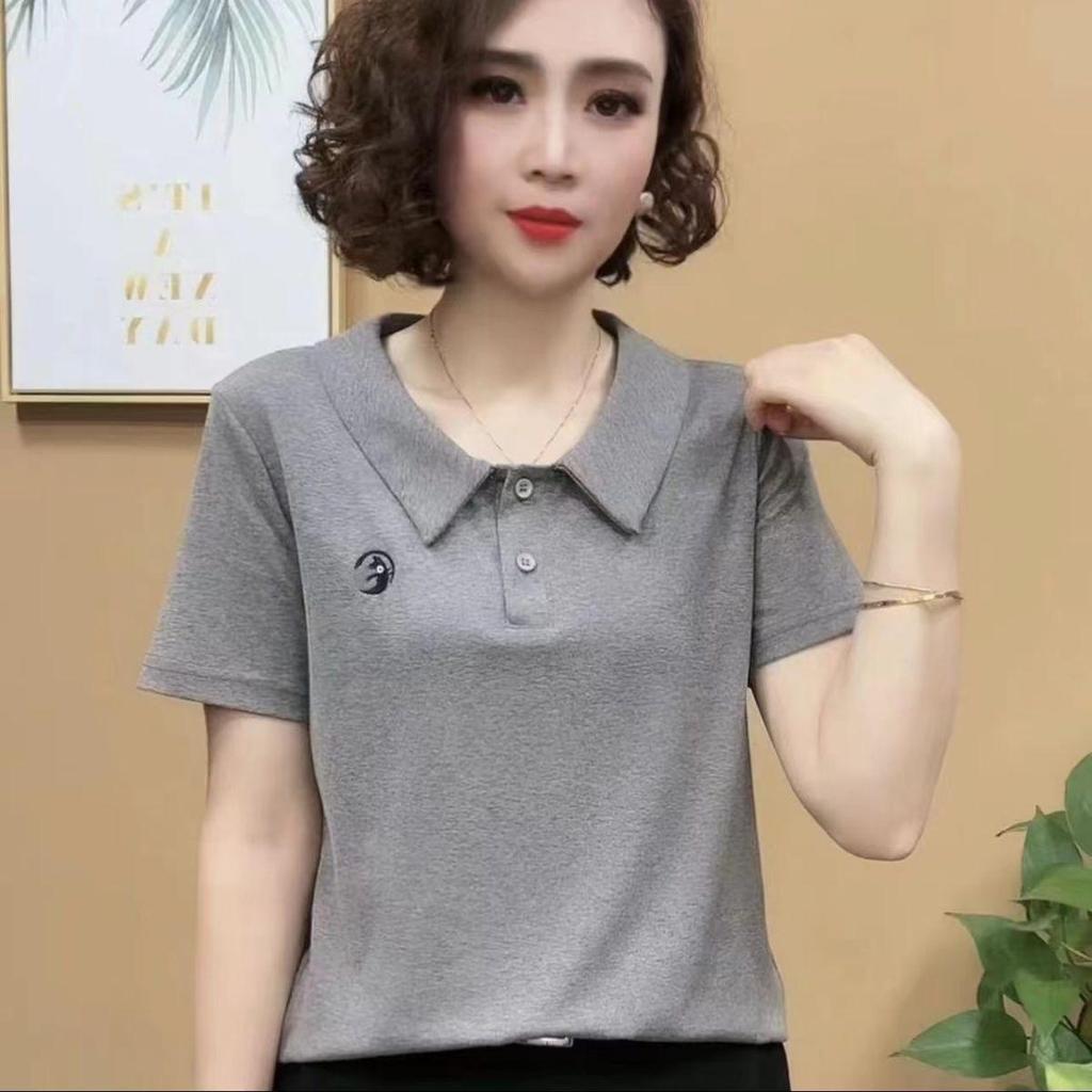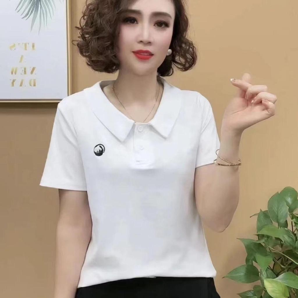 High-End Women's Stylish Summer Cotton T-Shirt with Peter Pan Collar - Slimming and Trendy Short-Sleeved Top