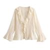 Весенний женский трикотажный топ с V-образным вырезом и многослойной отделкой - Сладкий и простой стиль