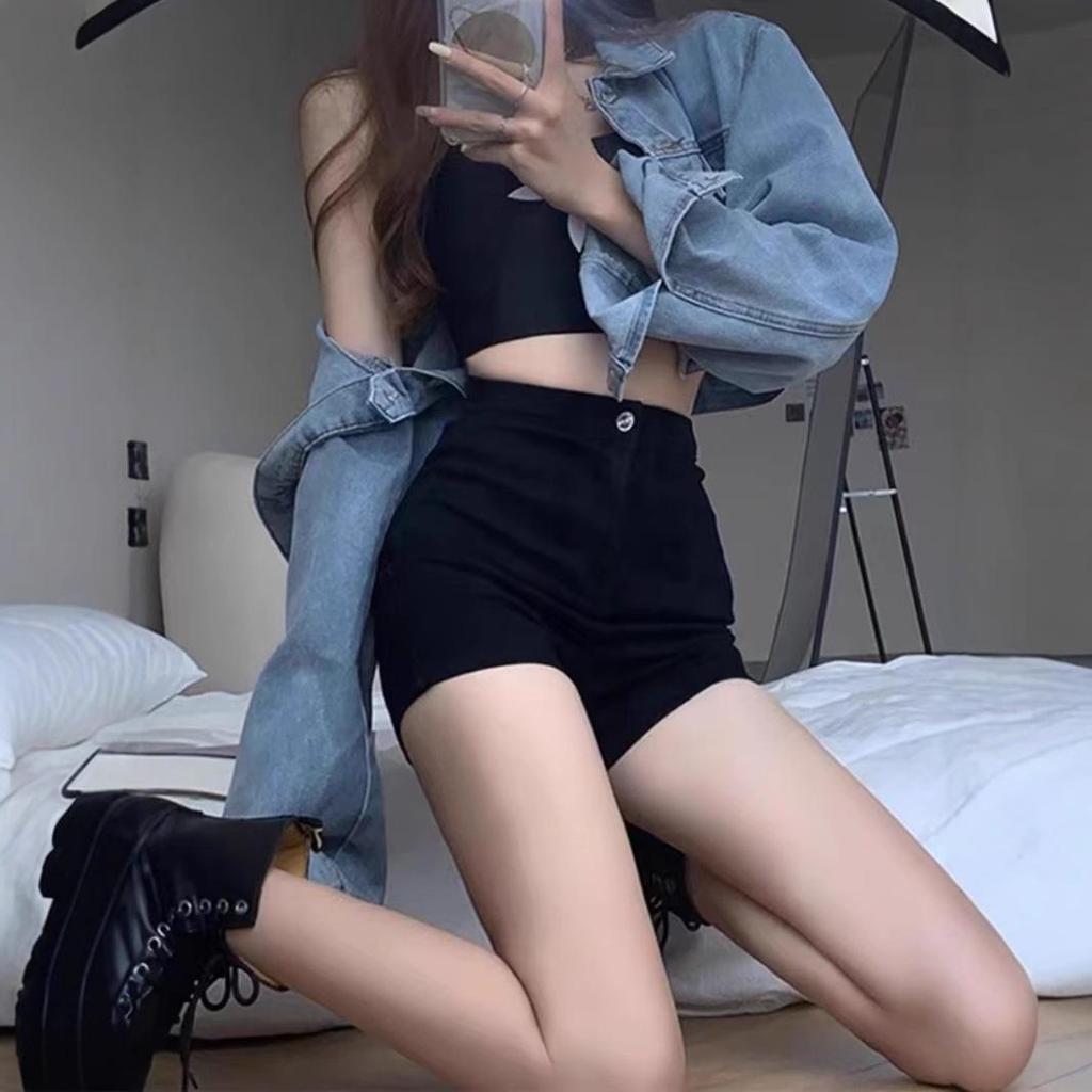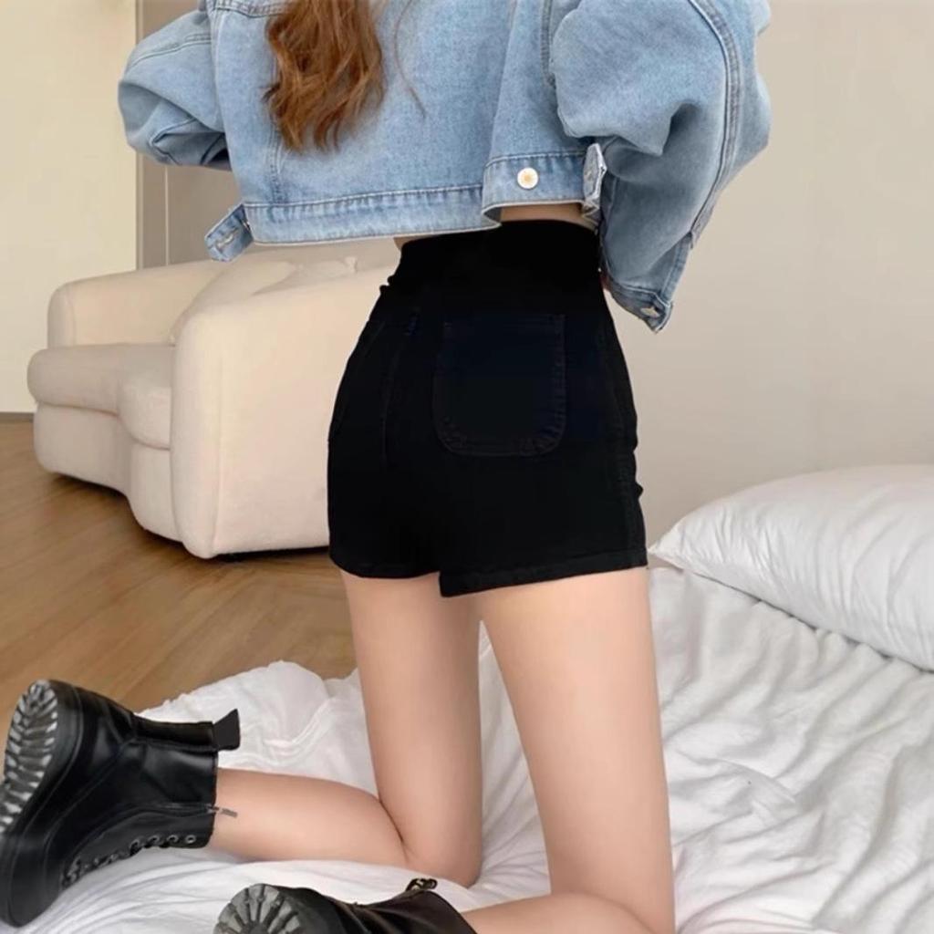 Женские джинсовые шорты с высокой посадкой и эластичной талией: Летнее приталенное А-силуэта, сексуальный облегающий бедра стиль.