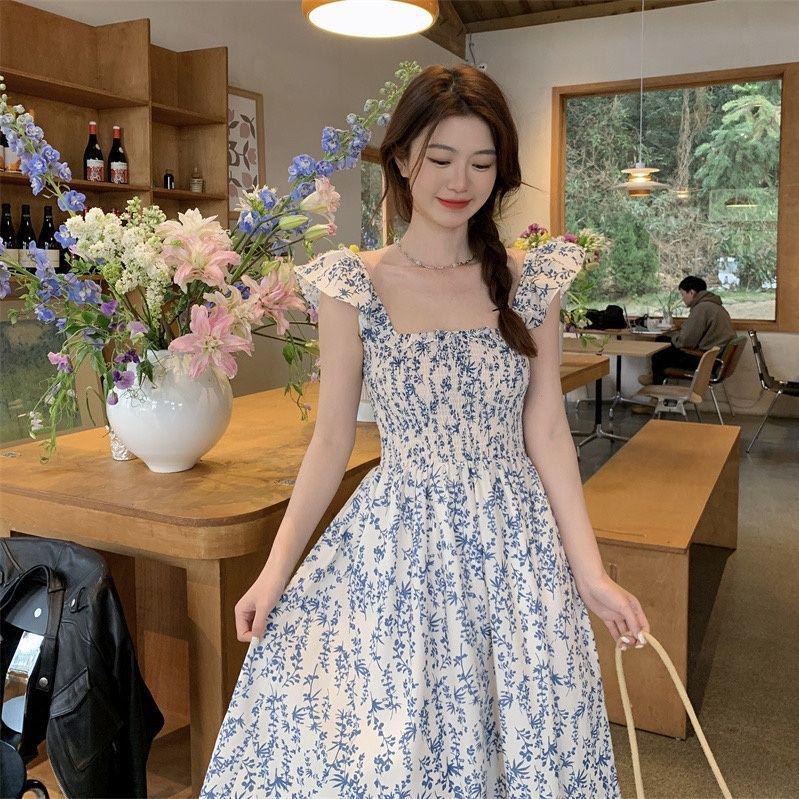 Женское летнее платье-майка с цветочным принтом и рукавами-крылышками - Облегающий крой, Длинное платье без рукавов — купить товар онлайн с бесплатной доставкой по всему миру!