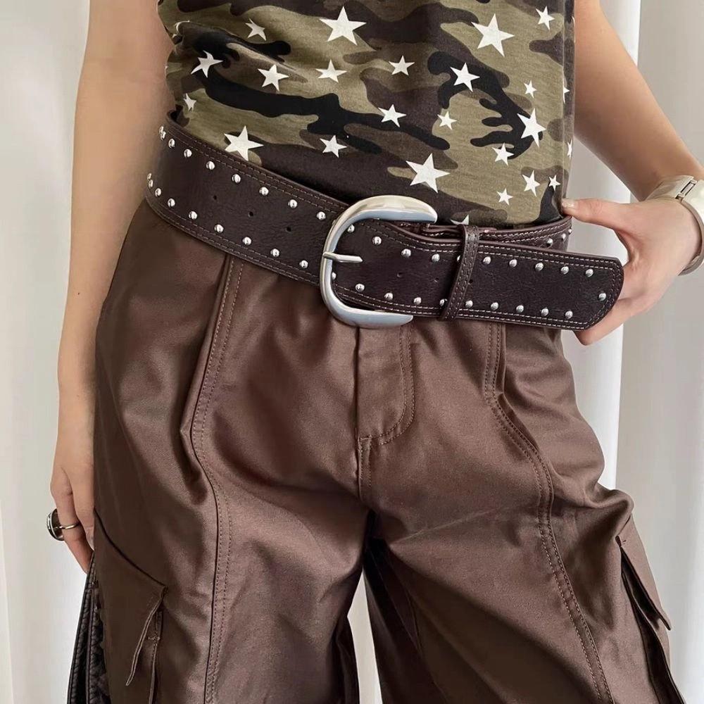 Y2k Women Rivet Belt Vintage Punk Style Belt Fashion Wide Leather Waistband Pants Accessories