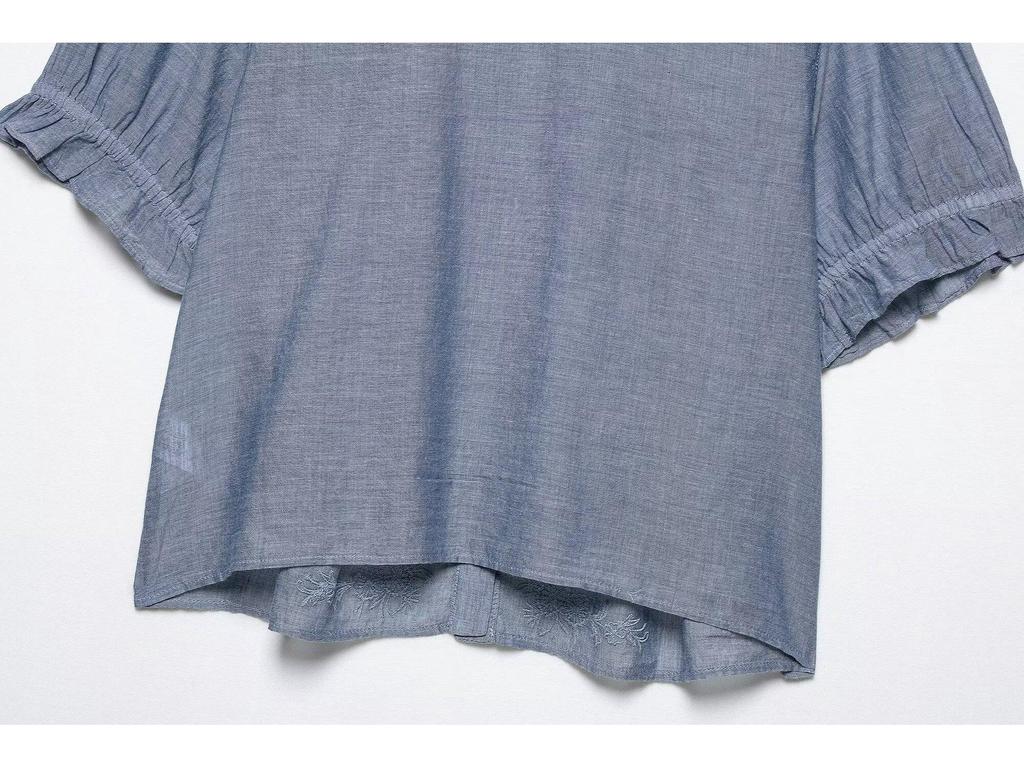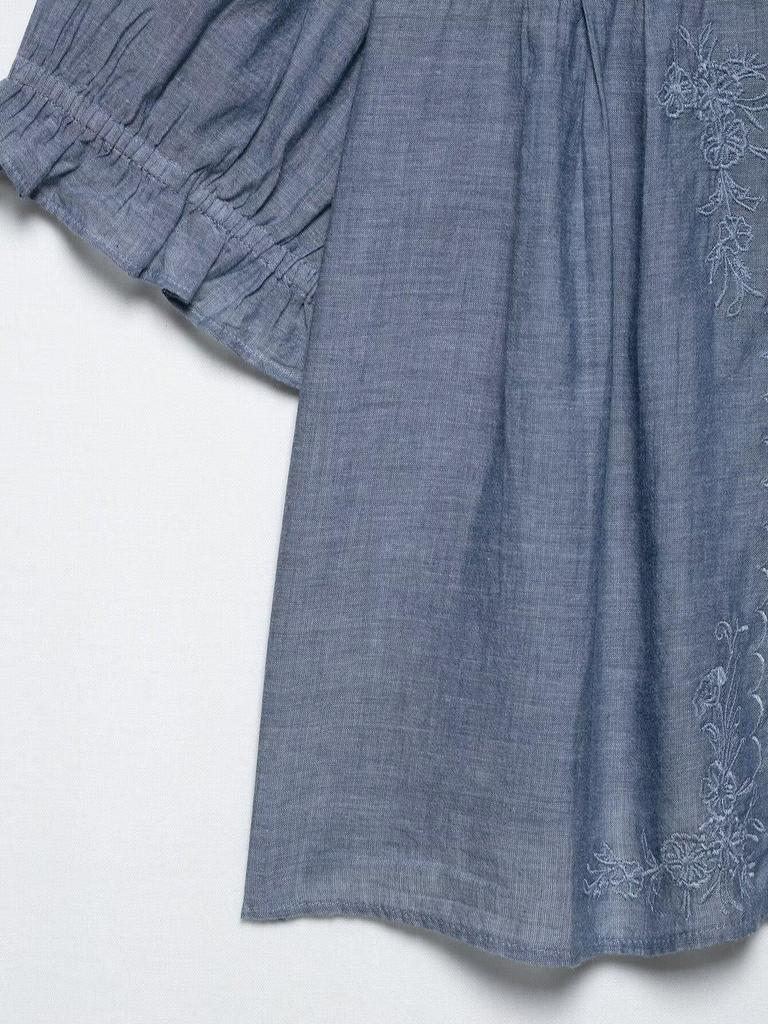 Почувствуйте элегантность весны в этой рубашке с цветочной вышивкой, идеальном сочетании европейского и американского стиля.. Изготовленная из высококачественного полиэстера, эта рубашка обеспечивает мягкую и удобную посадку.. Рубашка имеет шикарные рукава три четверти, которые обеспечивают ощущение легкости, а ее свободный крой гарантирует свободу движений и непринужденный вид.. Украшенное красивой цветочной вышивкой, это изделие легко добавит нотку женственности любому гардеробу.. Идеальная для повседневных прогулок или стильного дня в офисе, эта рубашка станет универсальным дополнением к вашей весенней коллекции.