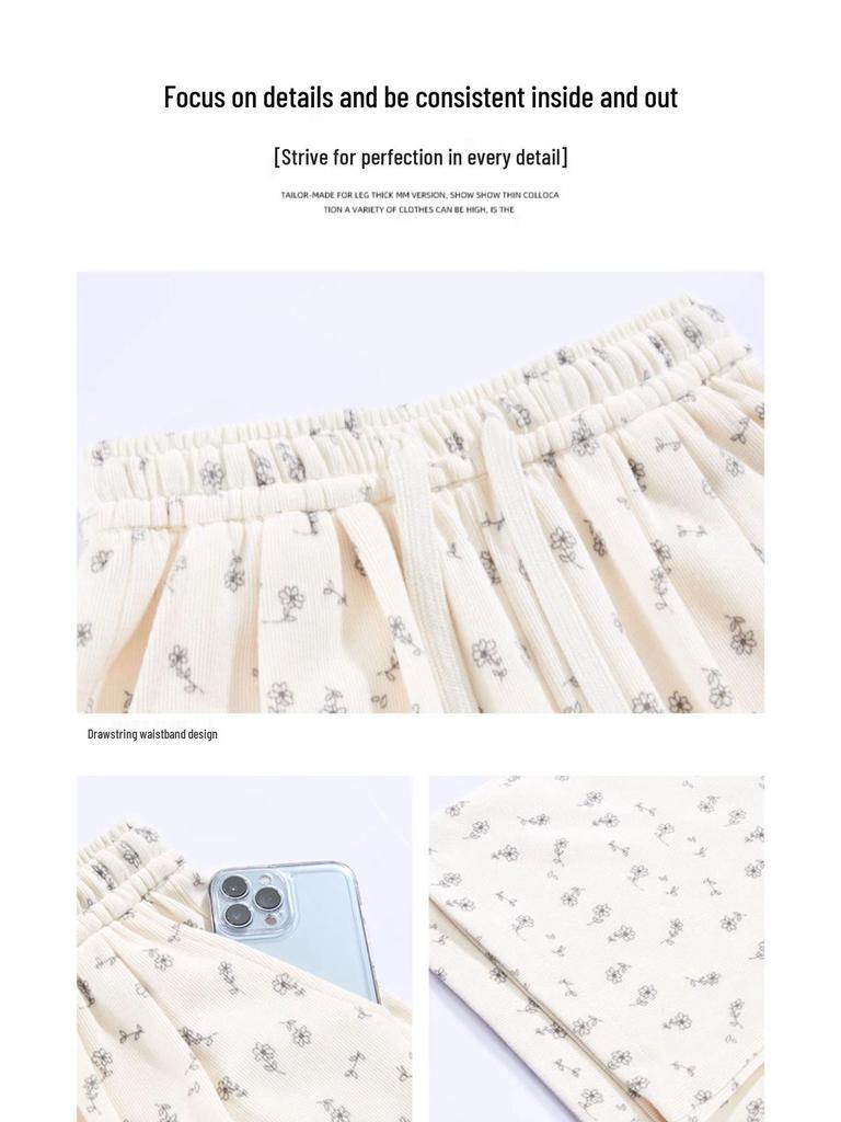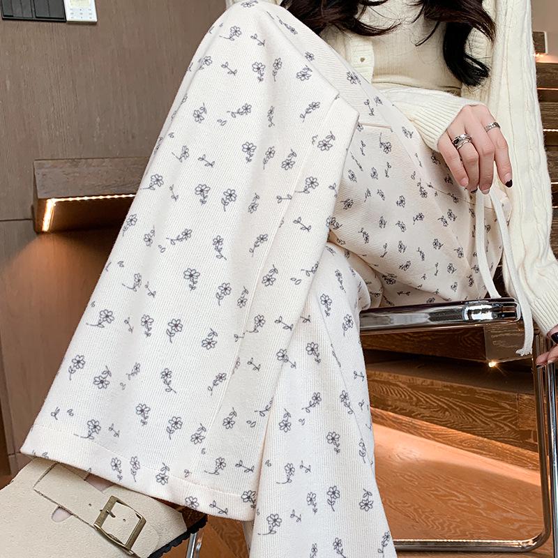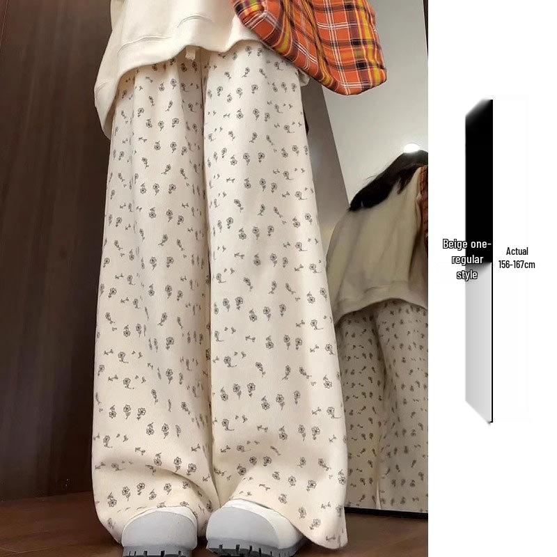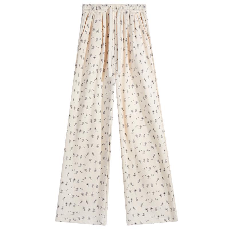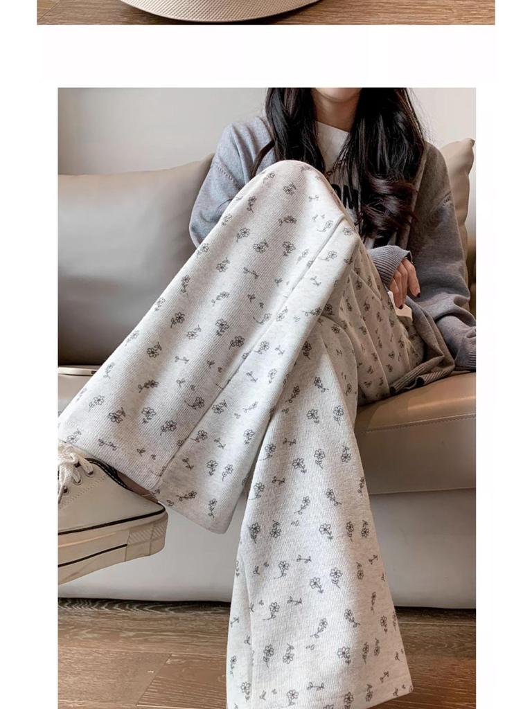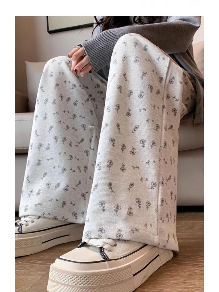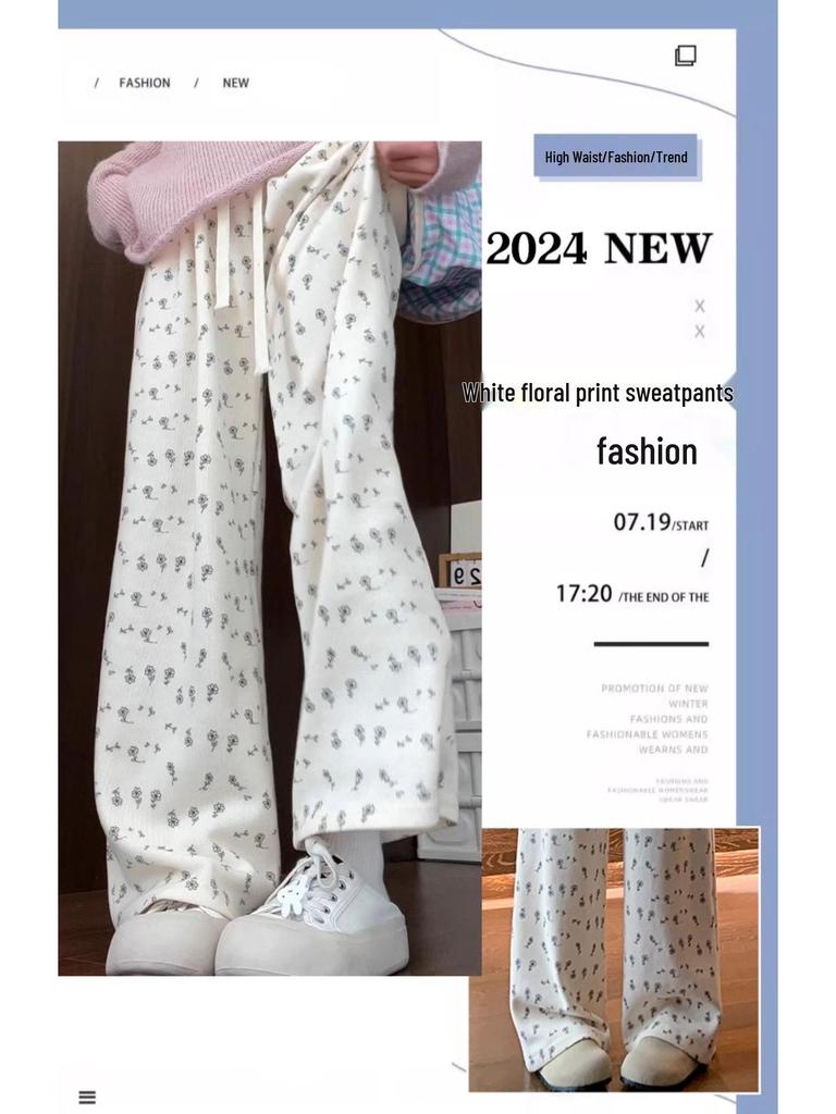 Маленькие белые цветочные широкие женские спортивные штаны: Новые свободные повседневные брюки прямого кроя на весну, лето, осень 2025