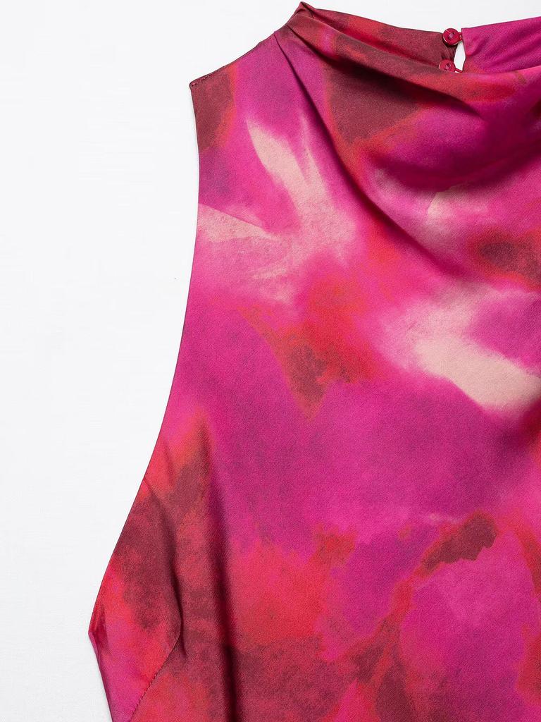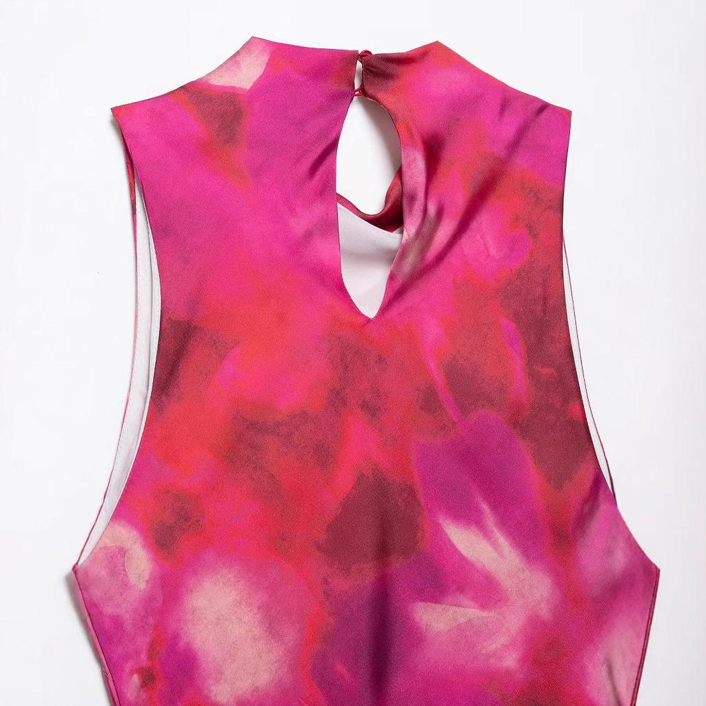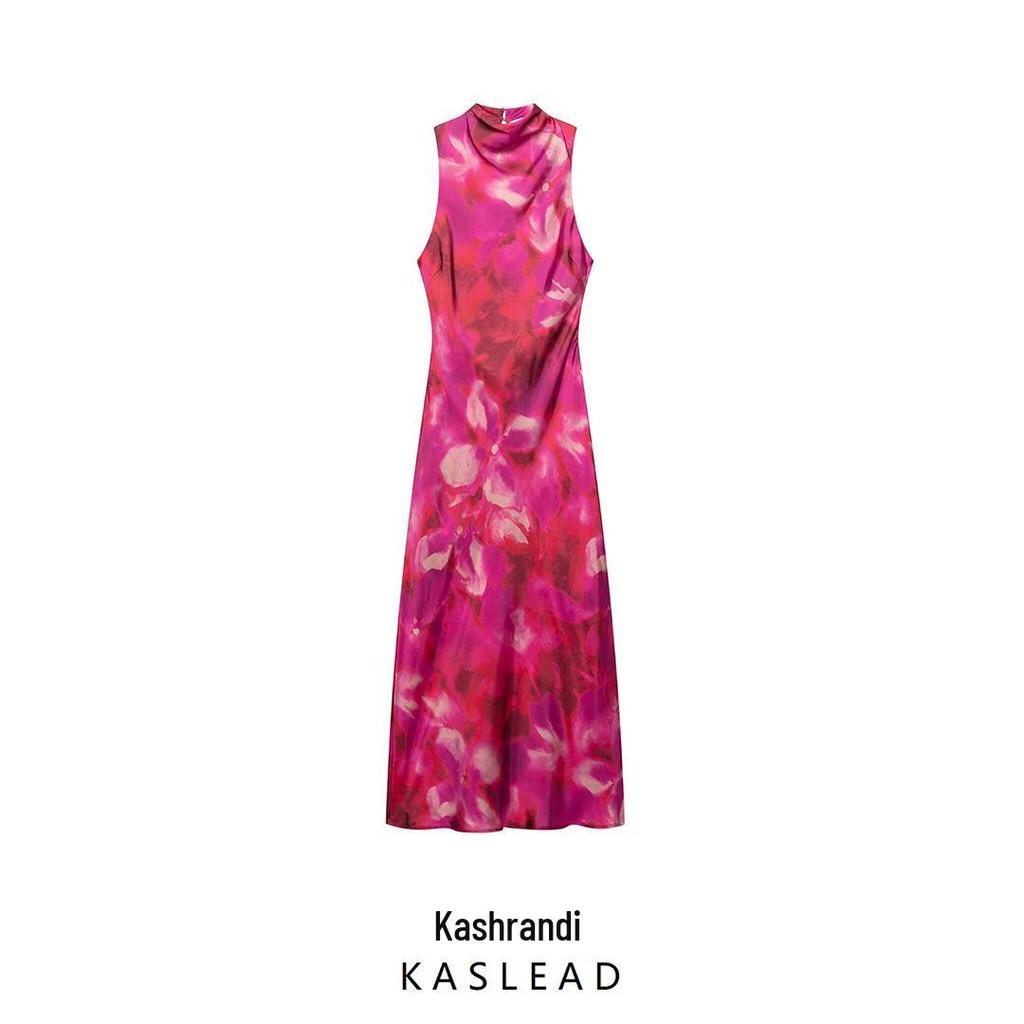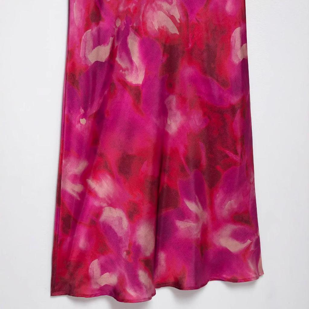 Весеннее женское приталенное миди-платье из европейского атласа с принтом, 2025