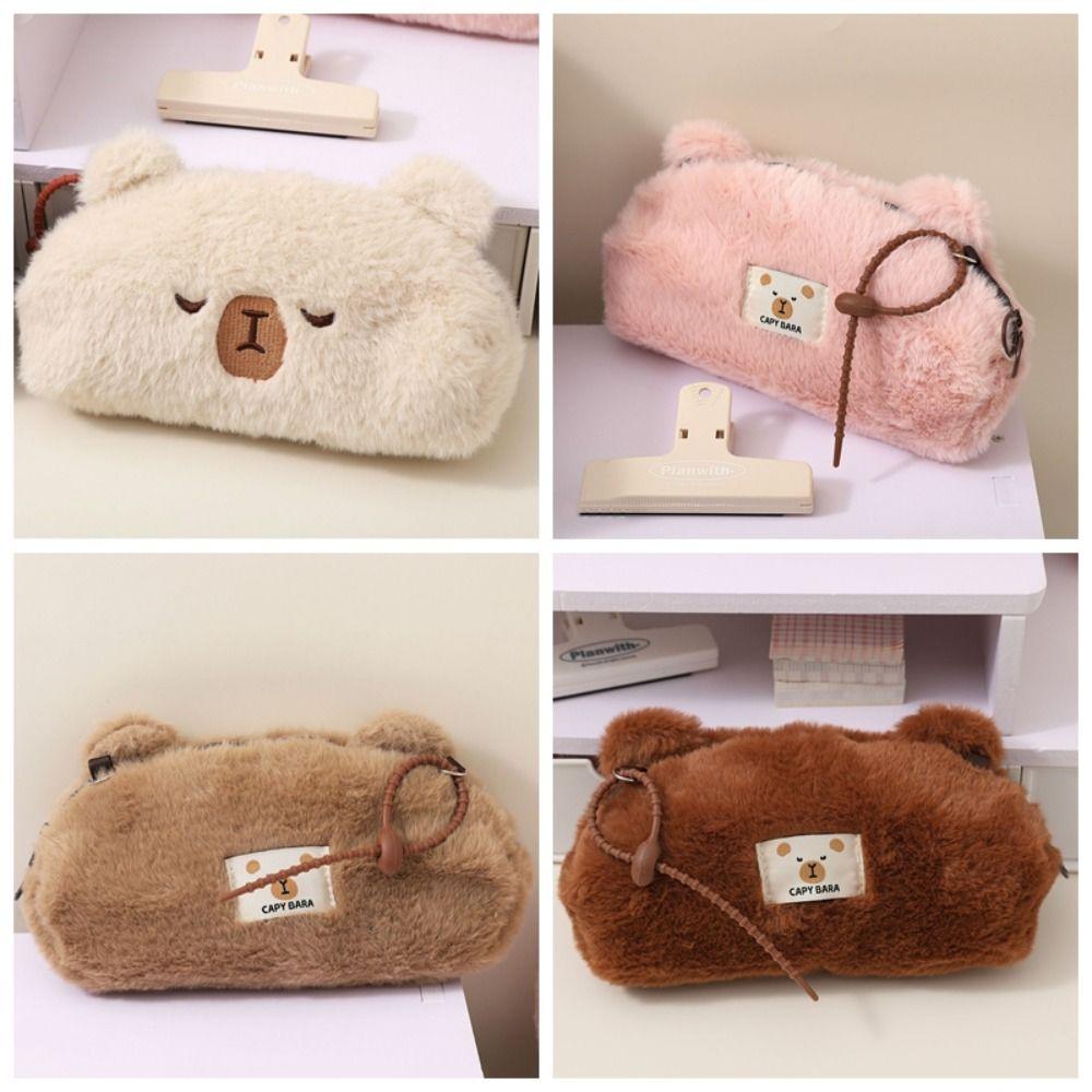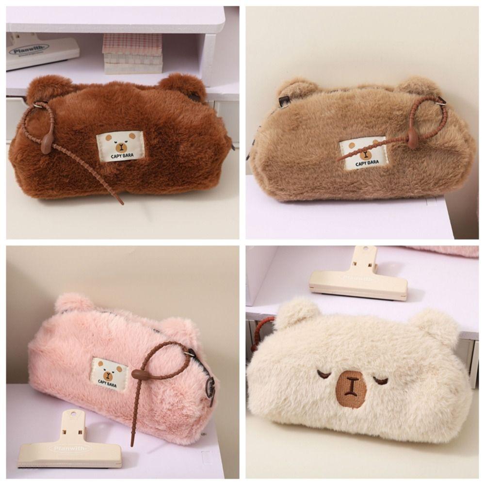 Мультяшная плюшевая сумка для ручек в виде животного, большая вместимость, сумка для макияжа и помады, сумка для канцелярских принадлежностей, органайзер для хранения на столе