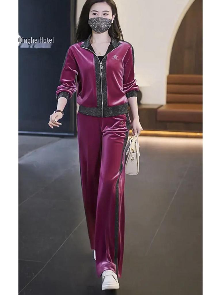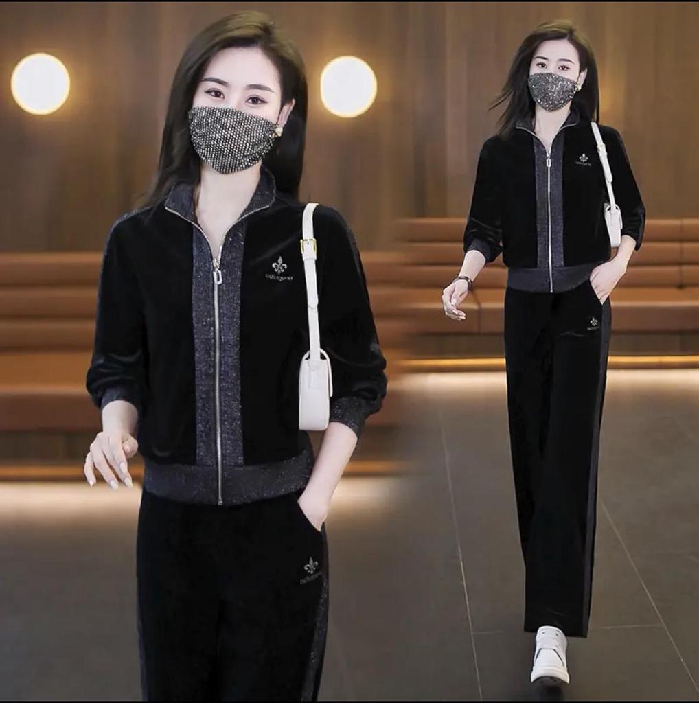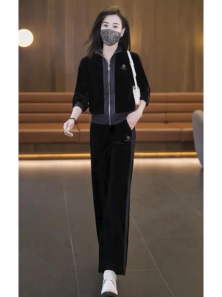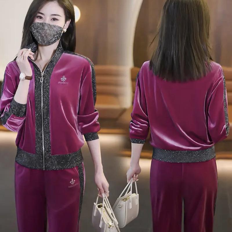 Женский велюровый спортивный костюм-двойка на весну/осень 2025 - Модная, не старящая повседневная одежда