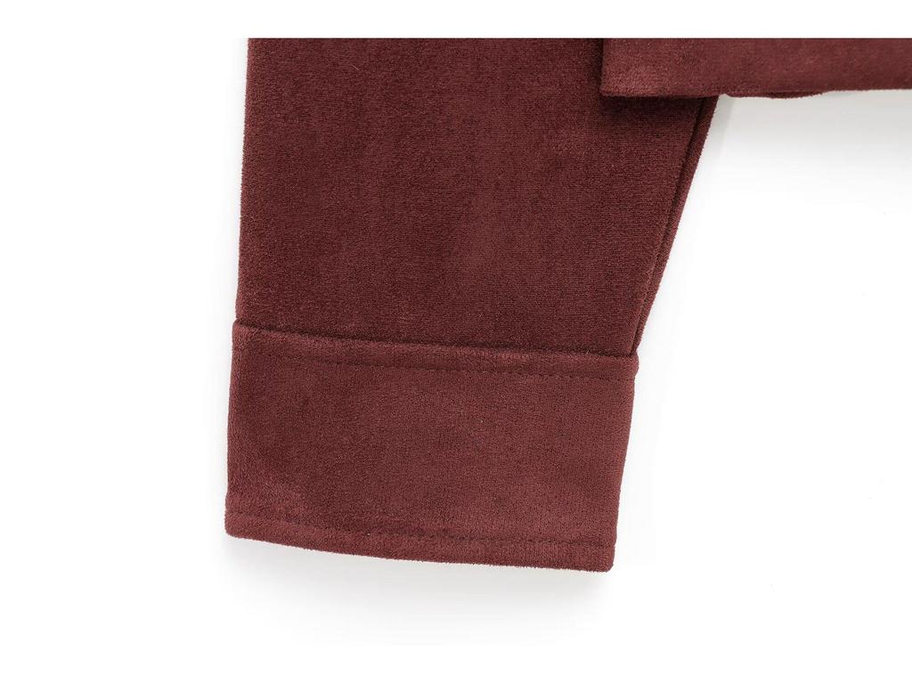 Окунитесь в изысканность с этой элегантно скроенной женской курткой, идеально подходящей для начала весны.. Куртка, изготовленная из роскошного полиэстера с эффектом замши, имеет классический отложной воротник и длинные рукава для создания классического и изысканного образа.. Его средняя толщина делает его идеальным для переходной погоды, обеспечивая комфорт и стиль.. Продуманно скроенный вырез горловины добавляет нотку изысканности, а функциональные карманы обеспечивают практичность и удобство.. Эта универсальная верхняя одежда создана с мыслью о современной женщине и легко дополняет как повседневные, так и более нарядные ансамбли.
