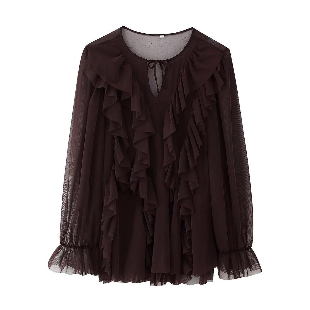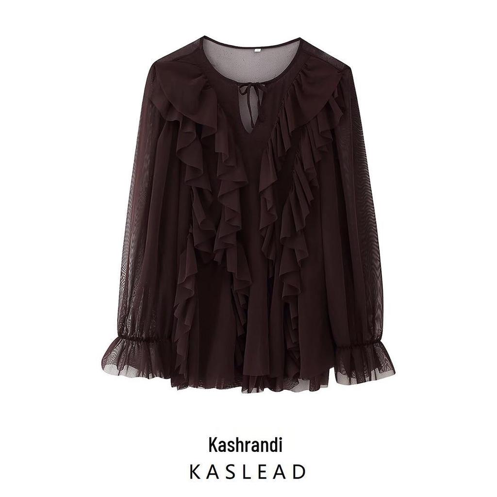 American-Style Layered Round Neck Long Sleeve Dress for Women - Spring 2025 European Collection