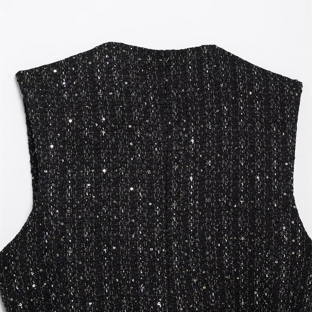 Весна 2025 Женский приталенный текстурированный жилет и однобортный кардиган