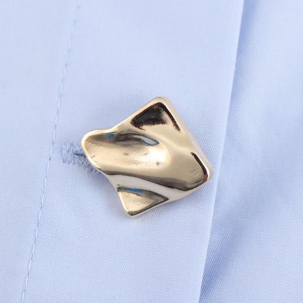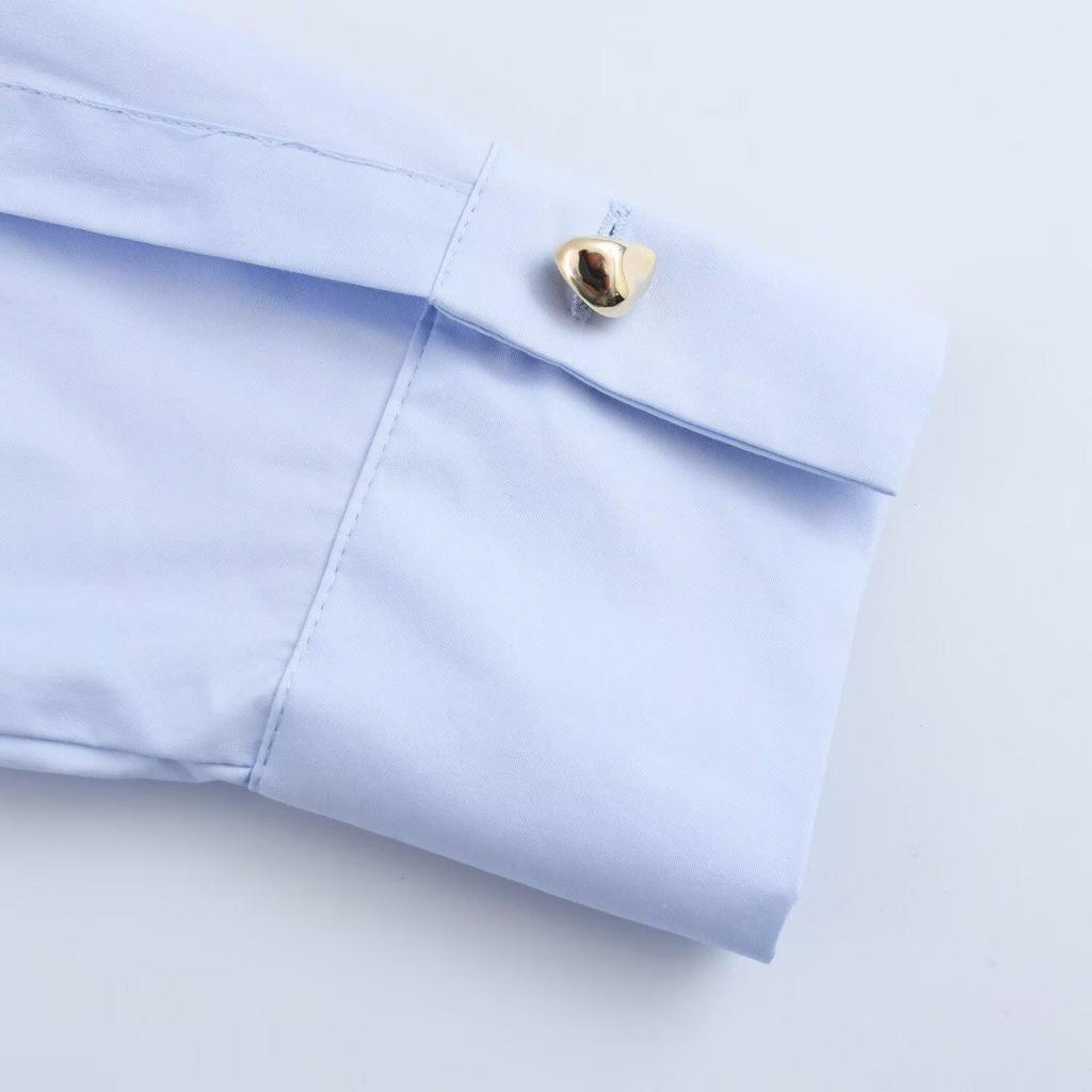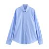 Весна 2025 Женская однотонная простая поплиновая рубашка с длинным рукавом, лацканами и двубортной застежкой