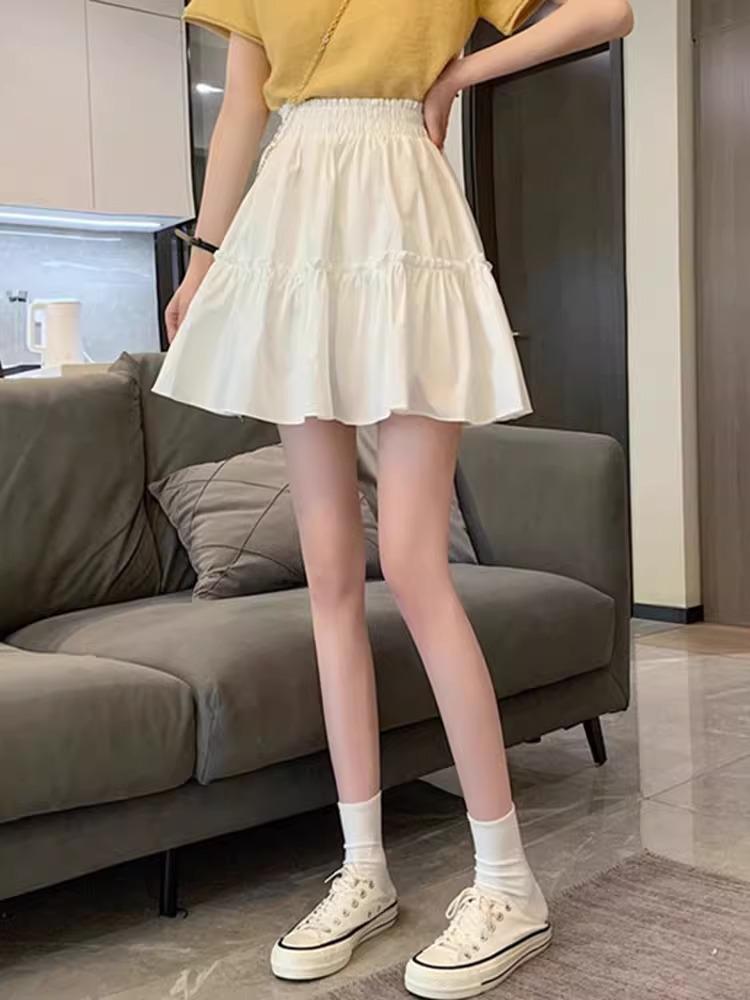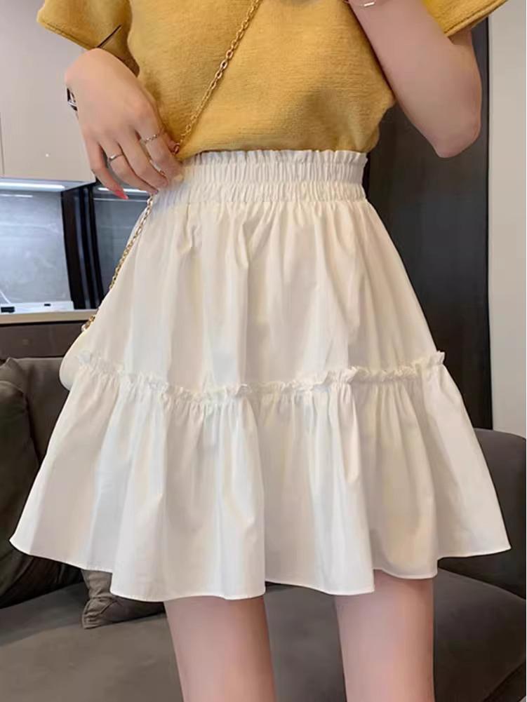 White High-Waisted A-Line Skirt - Spring 2024 College Style, Fairy Hip-Covering, Casual Puffy Design