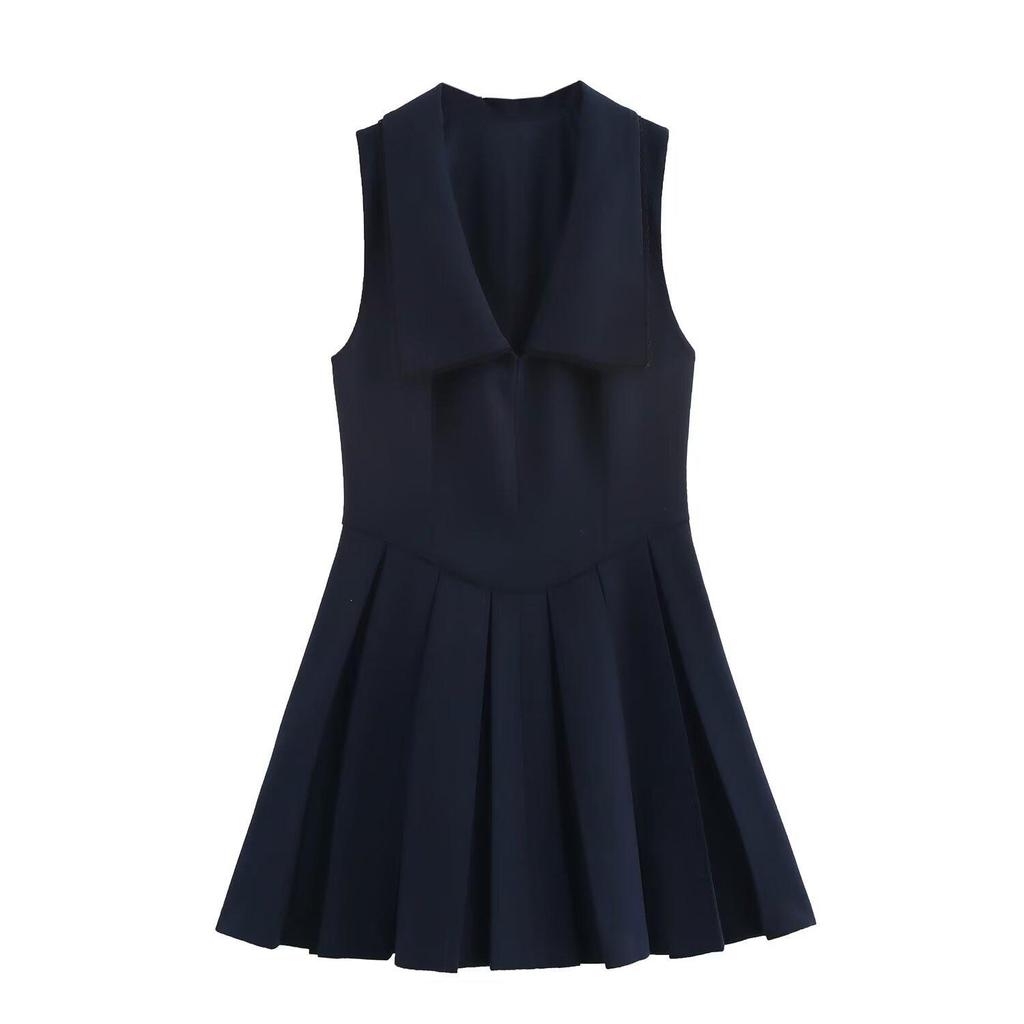 Весна 2025 Женское приталенное платье мини с V-образным вырезом без рукавов с плиссировкой