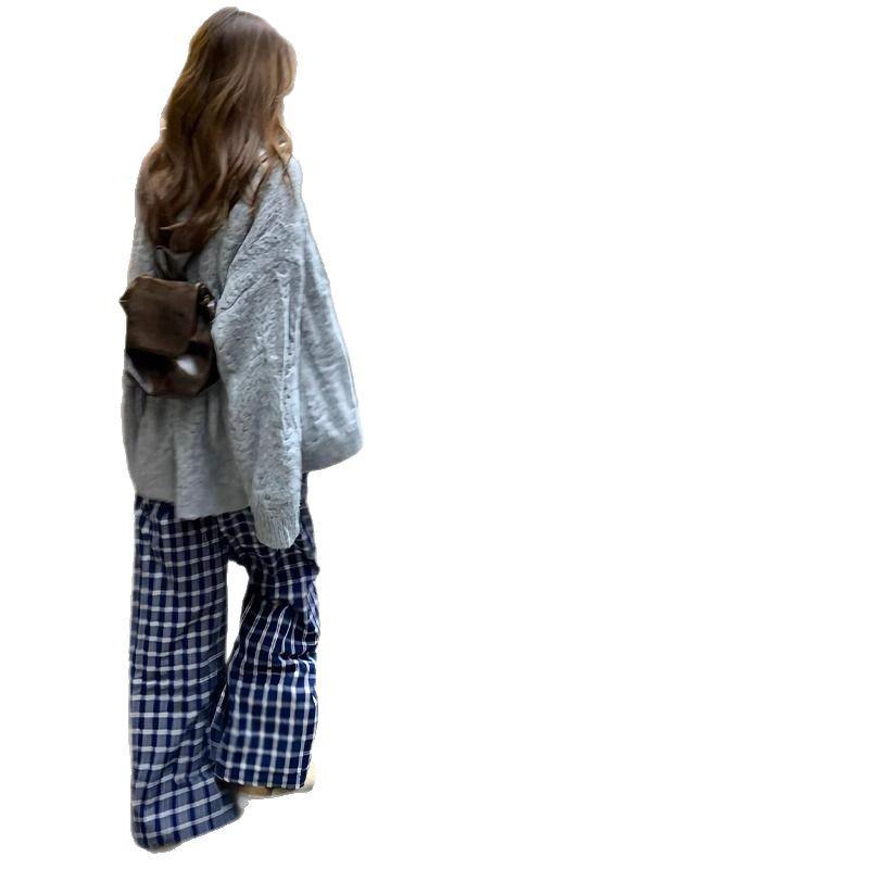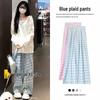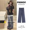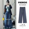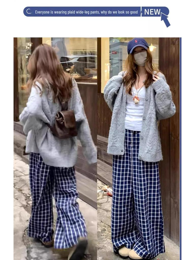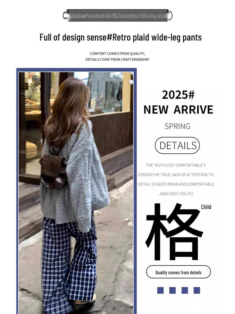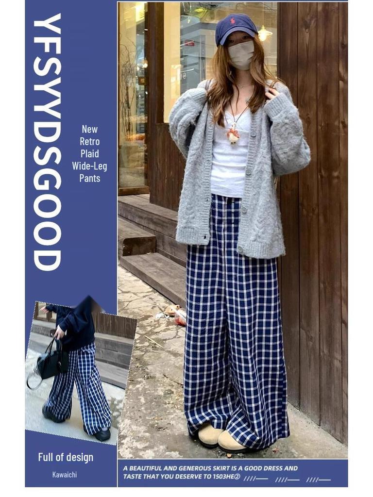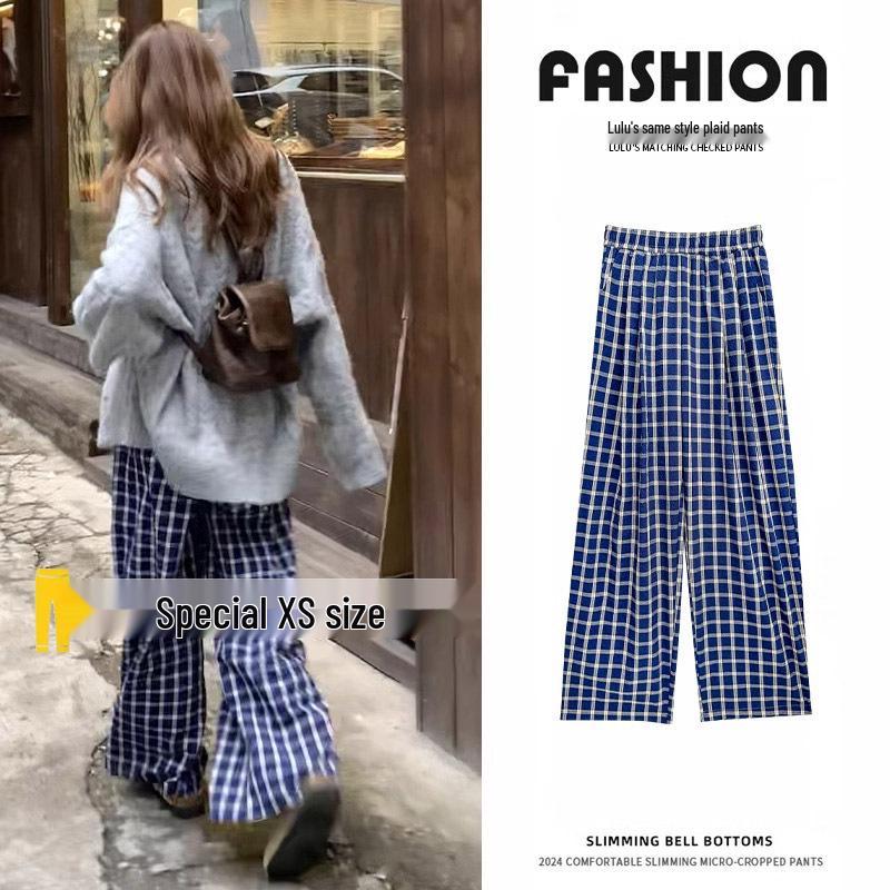 Эти маленькие синие клетчатые широкие брюки прямого кроя созданы для спортивного и стильного образа, вдохновленного чувством моды Чжао Лусы.. Идеальные для весны и осени, эти брюки изготовлены из полиэстера, обеспечивая комфорт и долговечность.. Идеальные для женщин ростом 145 см, эти брюки легко сочетают в себе повседневный стиль и шикарный клетчатый узор, что делает их универсальным дополнением к любому гардеробу.