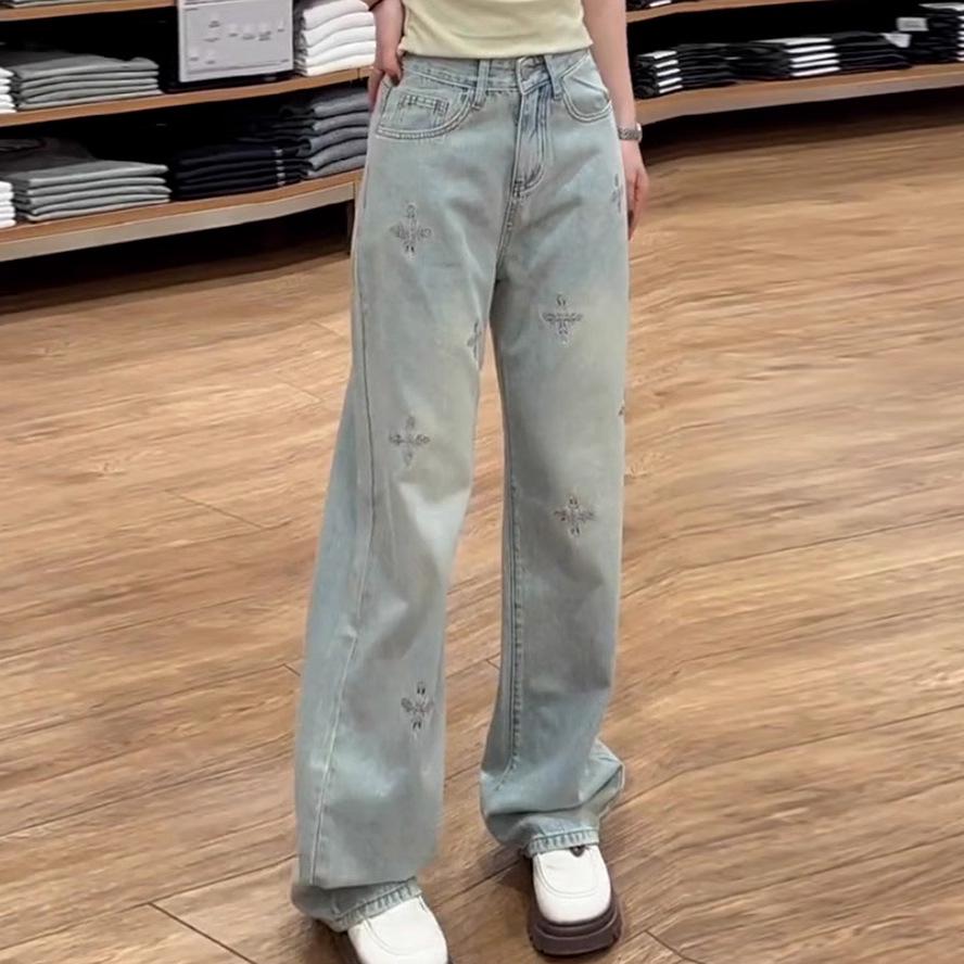 Женские джинсы с высокой посадкой, вышивкой, светлой стиркой, широкими штанинами, весна 2025 — купить товар онлайн с бесплатной доставкой по всему миру!