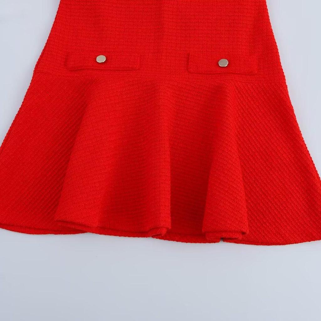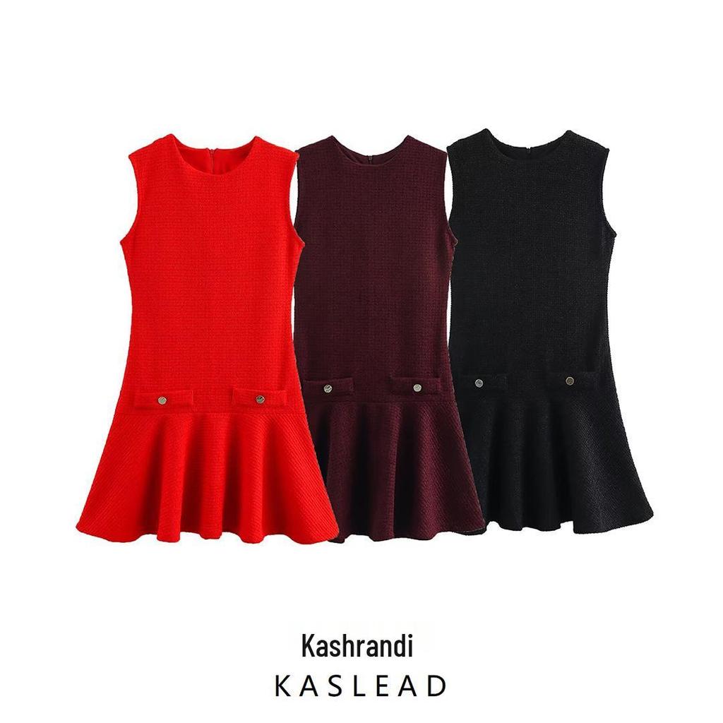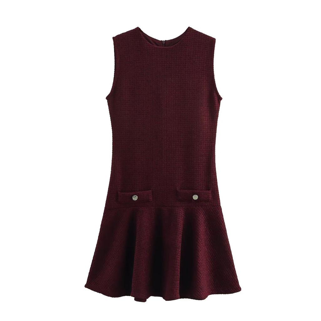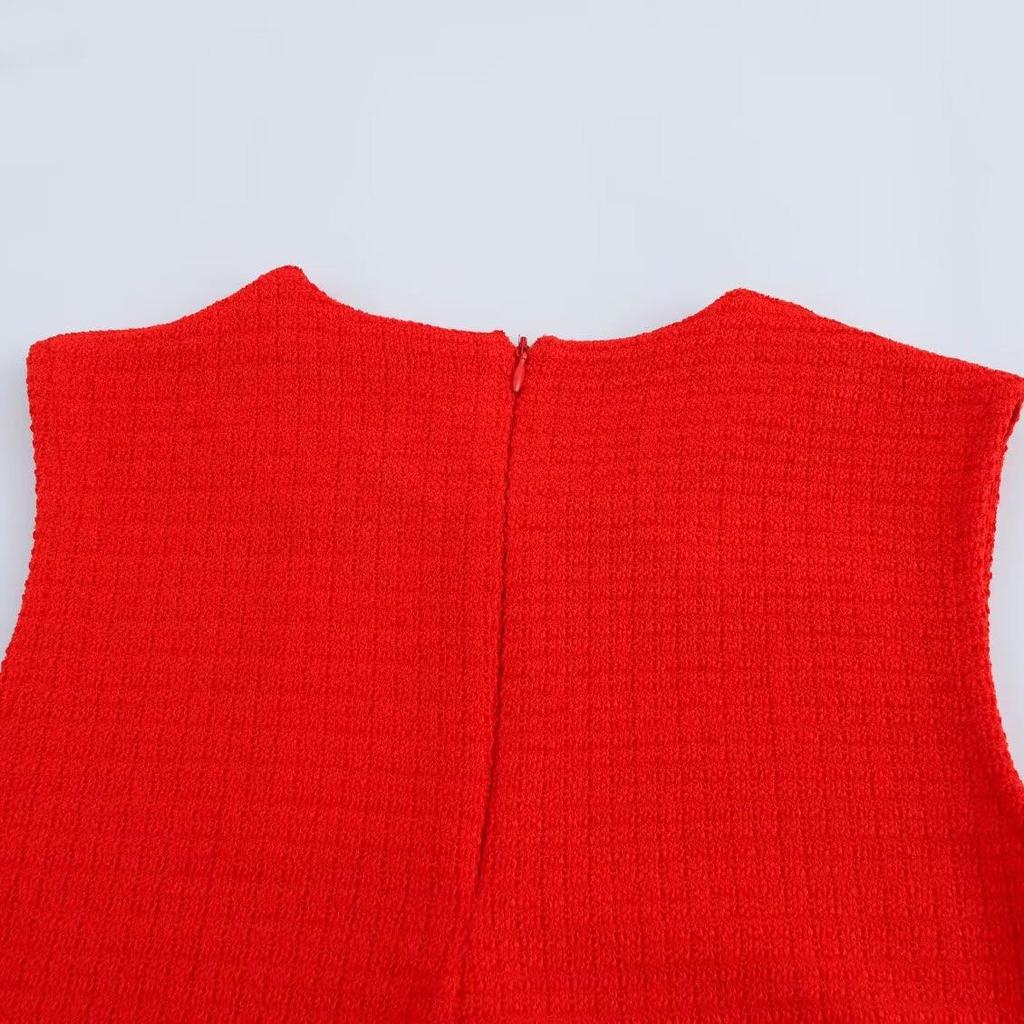 Весна 2025 Женское текстурированное платье без рукавов с круглым вырезом - Европейский и американский стиль