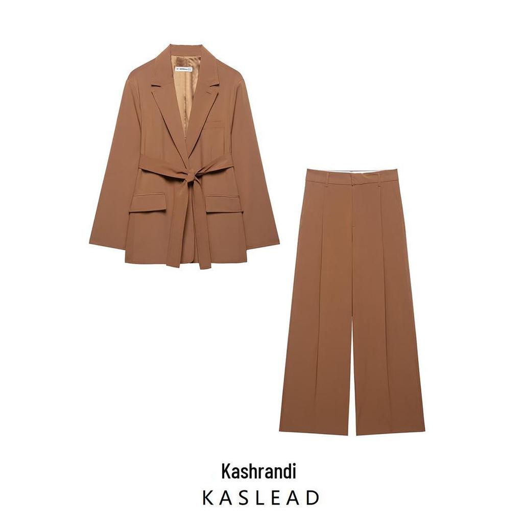 Откройте для себя вершину моды с этим стильным костюмом, состоящим из приталенного пиджака с поясом и повседневных брюк.. Этот ансамбль, изготовленный из высококачественного полиэстера, воплощает собой сочетание европейского и американского стилей, идеально подходящее для современной женщины, стремящейся к изысканности и комфорту.. Идеальный как для официальных мероприятий, так и для повседневных выходов, этот костюмный набор без труда дополнит ваш гардероб своим шикарным дизайном и универсальной привлекательностью.