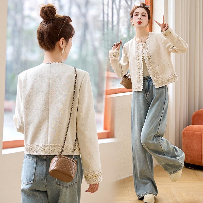 Весна 2025 Женская куртка в китайском стиле с вышивкой и бисером - Маленькая, Свободная, Приталенного кроя