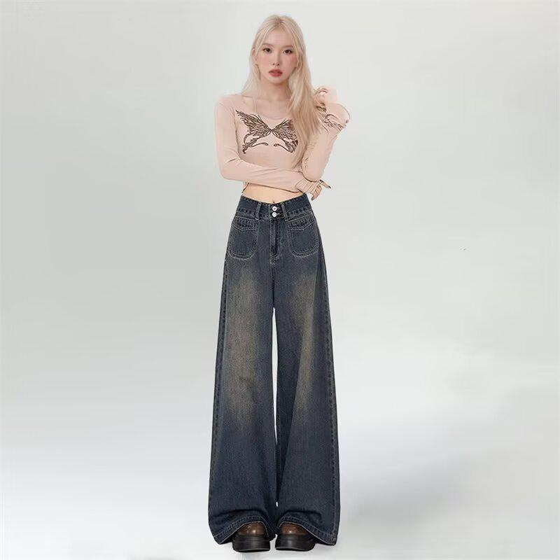 Ощутите идеальное сочетание ретро-шарма и современного стиля с этими джинсами с высокой посадкой, широкими штанинами и двубортной застежкой.. Изготовленные из премиального денима, они имеют драпирующуюся силуэтную линию, которая легко переходит от весны к осени.. Их спортивный стиль добавляет современный акцент, что делает их идеальным выбором для повседневных прогулок или расслабленных выходных.. Высокая линия талии обеспечивает облегающий силуэт и дополнительный комфорт, демонстрируя универсальный дизайн, который дополнит ваш сезонный гардероб.