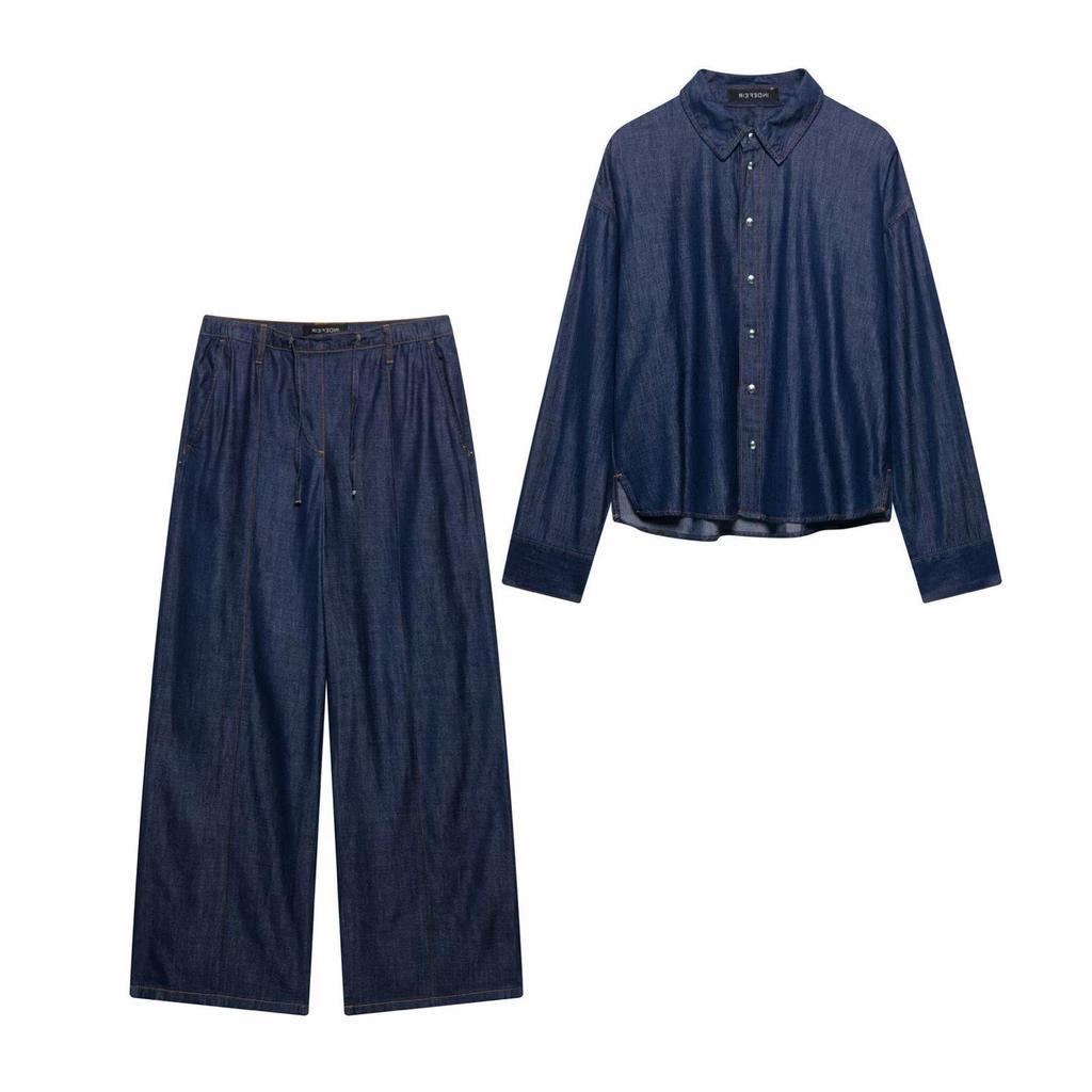 TAOP&ZA Весенний женский джинсовый комплект: рубашка и брюки с высокой талией и широкими штанинами