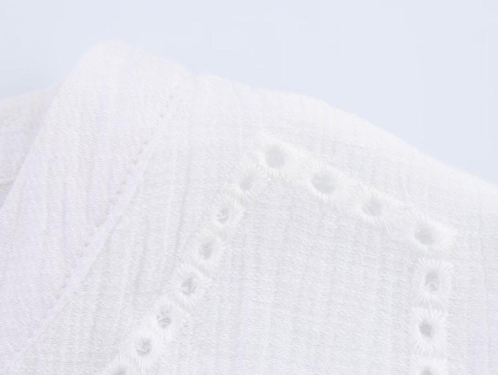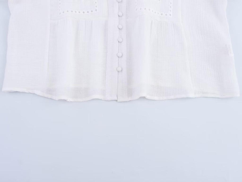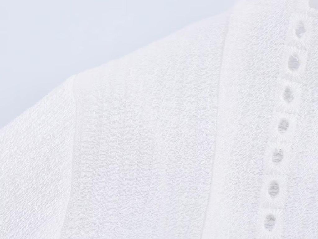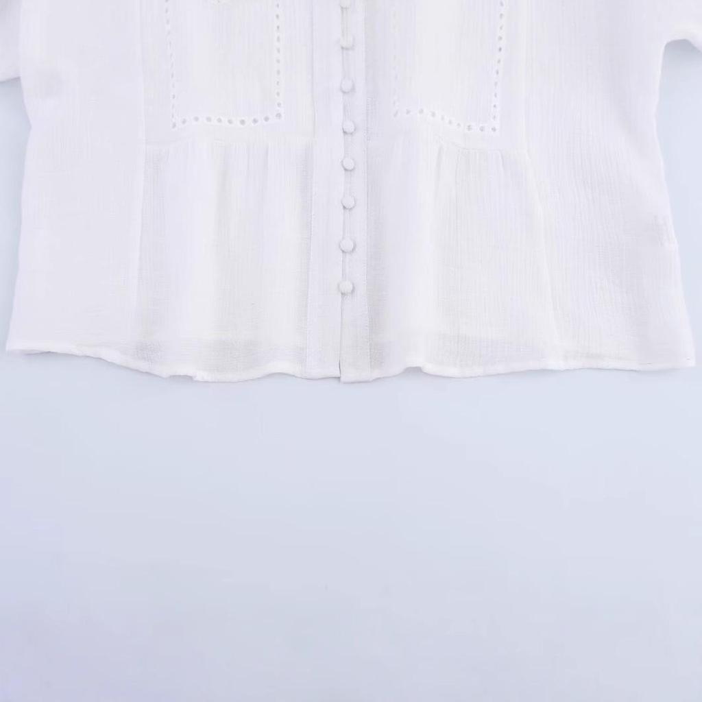Женская короткая рубашка в европейском и американском стиле с ажурной вышивкой - Весна 2025