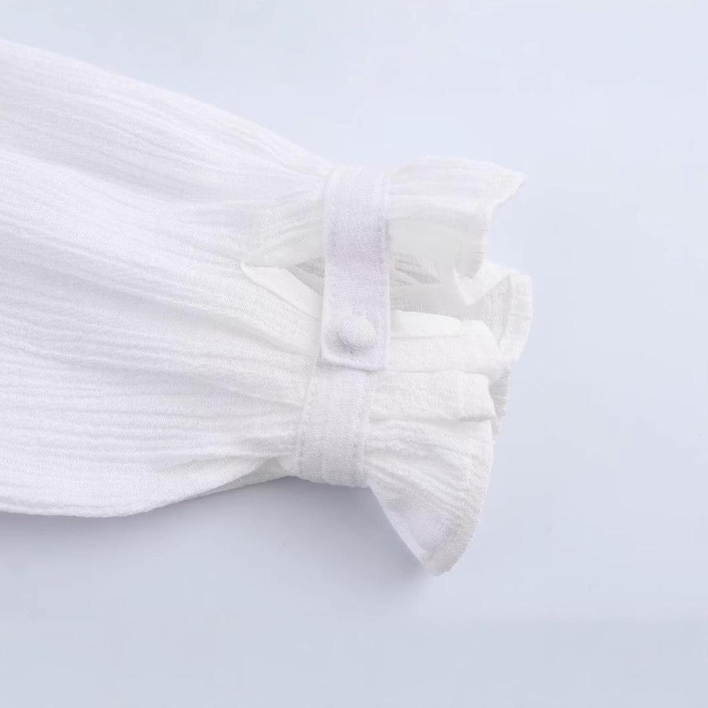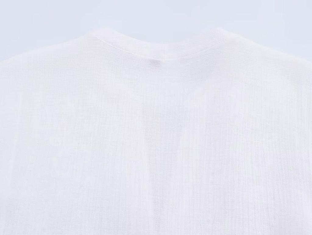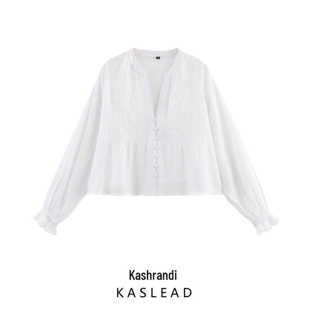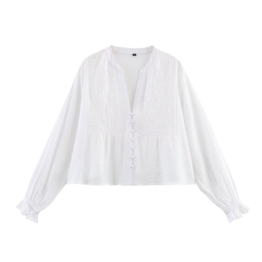 Женская короткая рубашка в европейском и американском стиле с ажурной вышивкой - Весна 2025