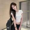 Острый укороченный топ с круглым вырезом и короткими рукавами American Girl - Облегающий крой, Шикарная высокая талия, Летний стиль — купить товар онлайн с бесплатной доставкой до всему миру!