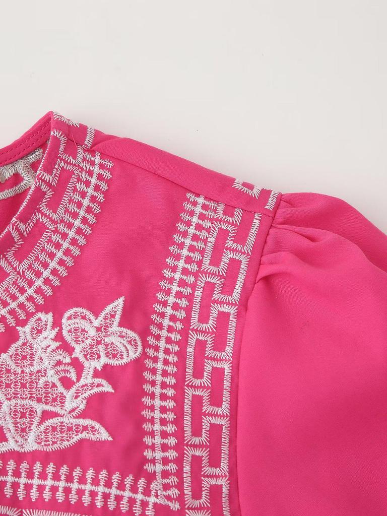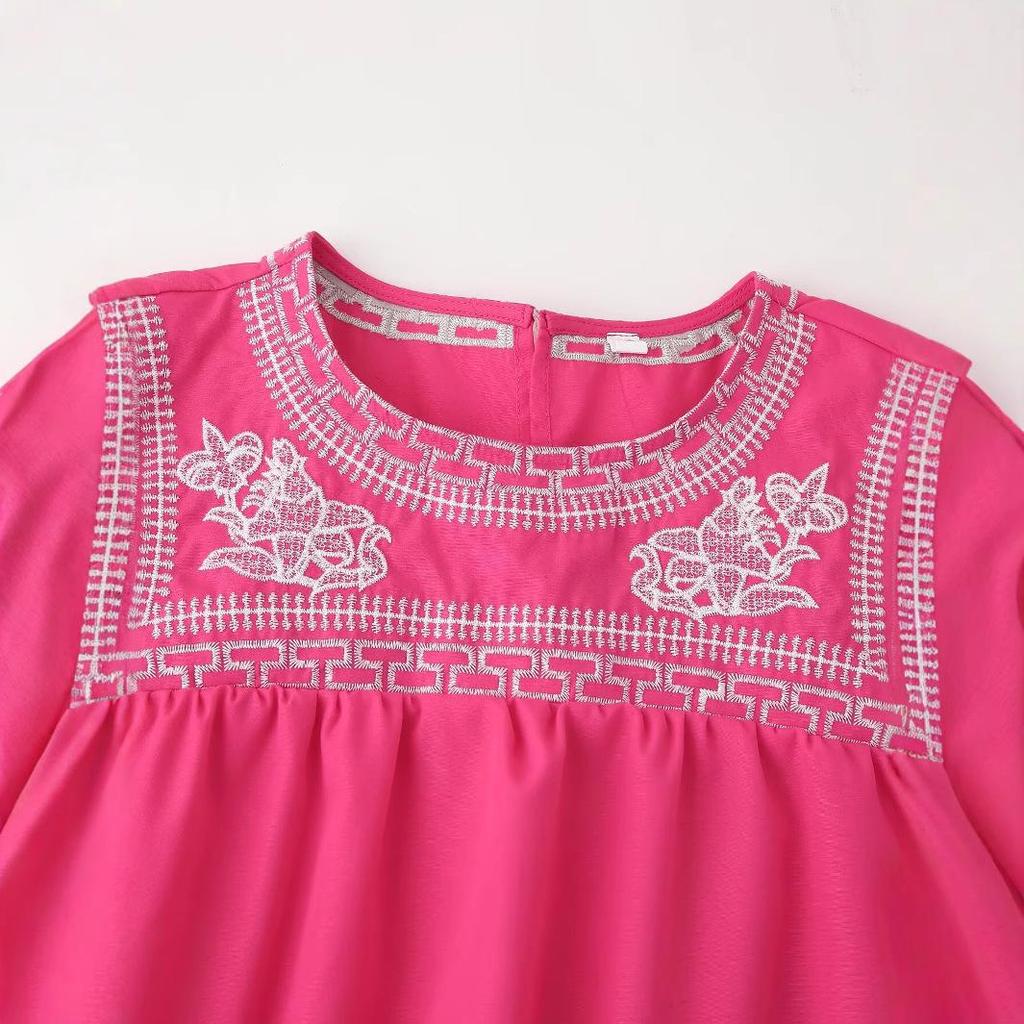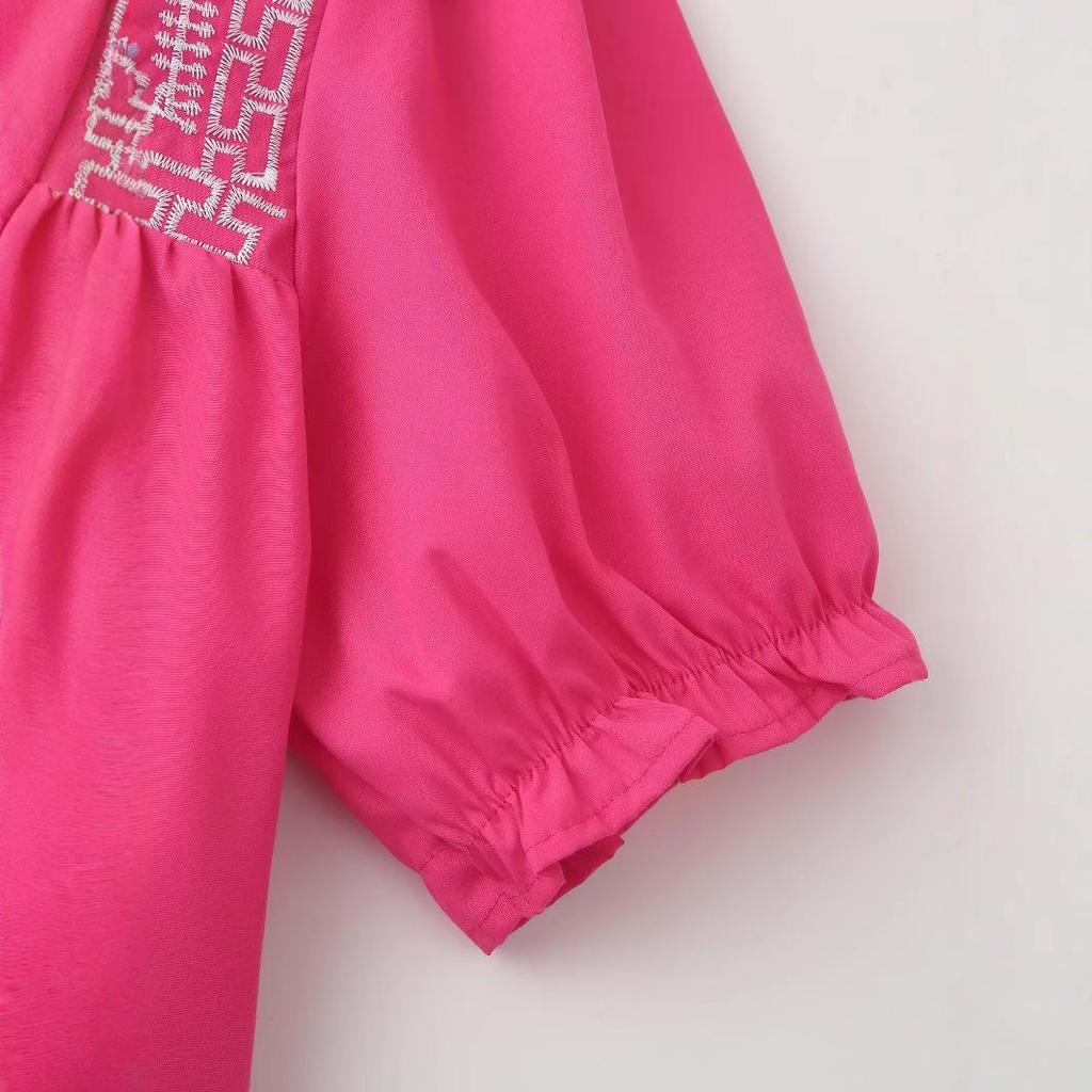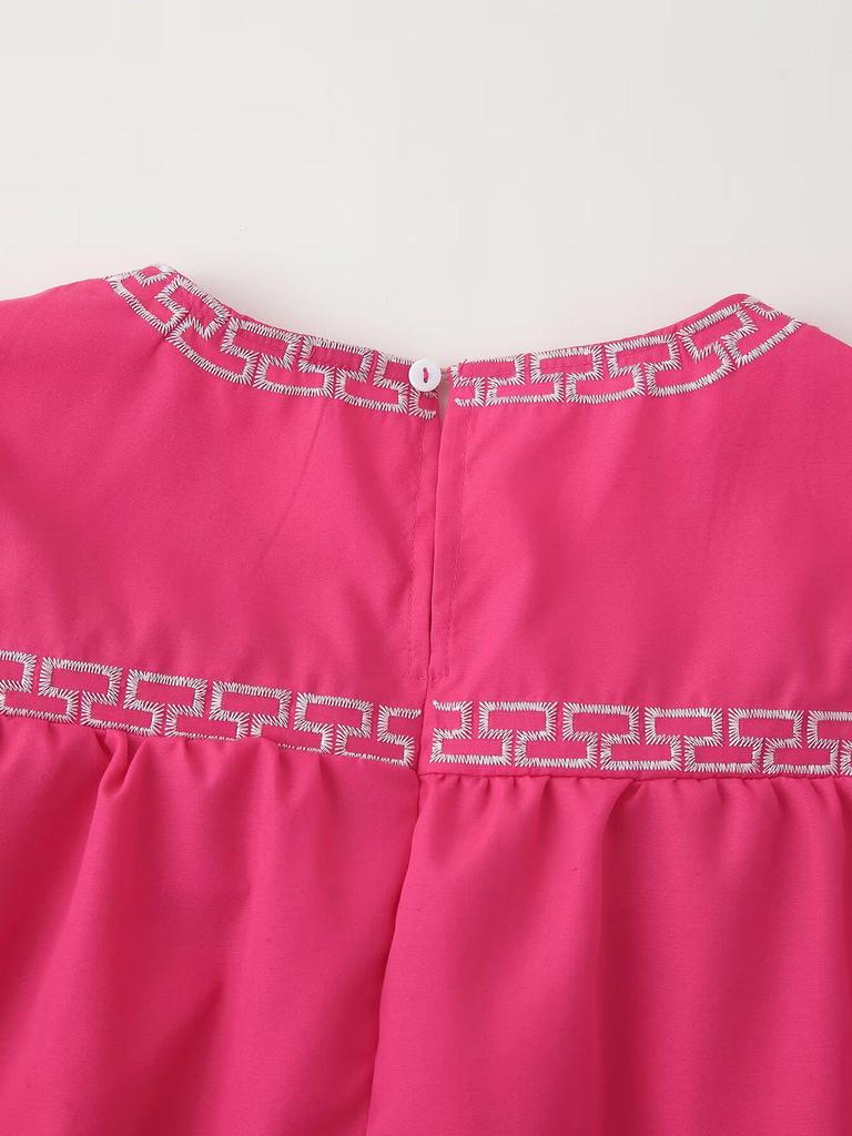 Встречайте весну элегантно и стильно в этой красиво вышитой рубашке с коротким рукавом. Эта рубашка, выполненная в современном европейском и американском стиле, украшена изысканной вышивкой, которая добавит нотку изысканности вашему гардеробу.. Изготовленный из высококачественного полиэстера, он обеспечивает легкое и дышащее ощущение, гарантируя комфорт в течение всего дня.. Однотонный узор и свободный крой создают расслабленный, но шикарный силуэт, а круглый вырез горловины добавляет классический штрих.. Идеальная как для повседневных выходов, так и для более изысканных случаев, эта рубашка станет универсальным дополнением к любому гардеробу, следящему за модой.