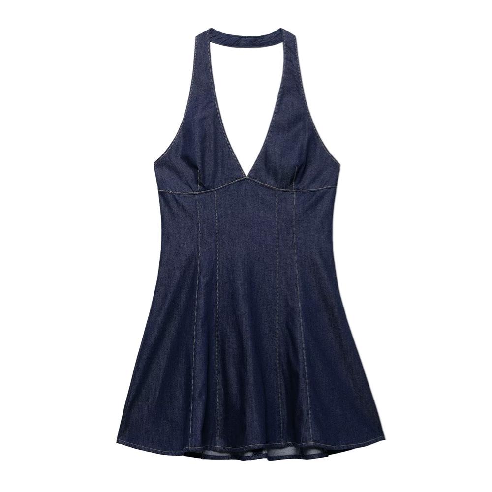 2025 Весна/Лето Приталенное Сексуальное Платье-Халтер Без Спины из Денима