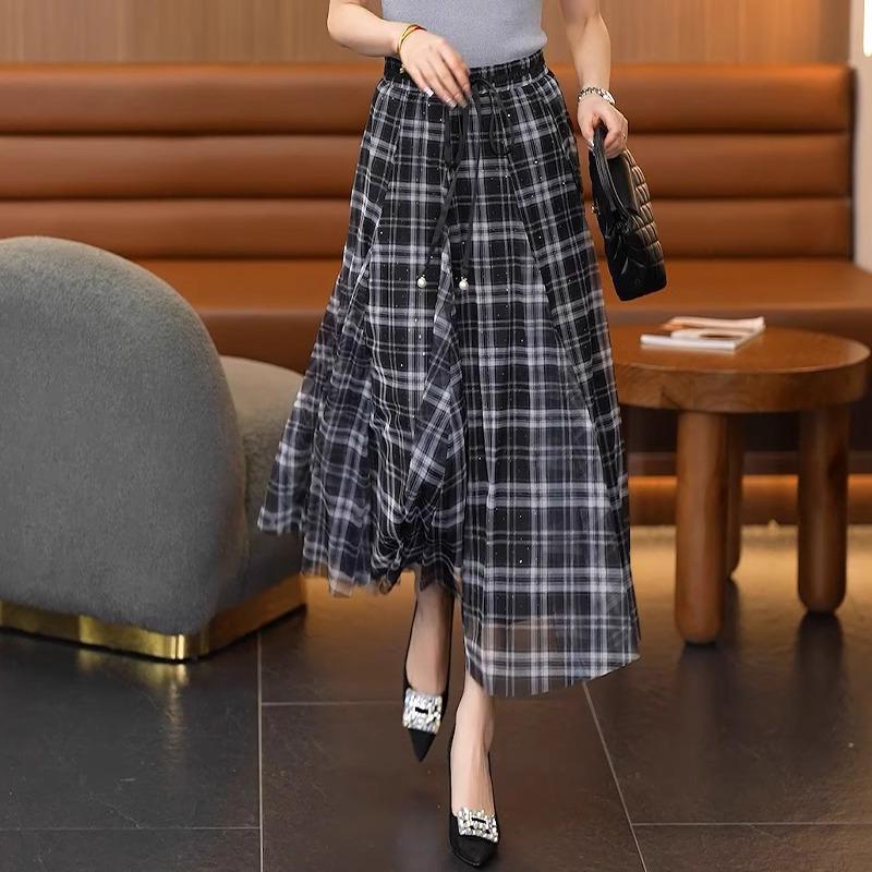 Женская юбка миди с высокой талией, в клетку ретро, из сетки - Коллекция весна/лето 2025 — купить товар онлайн с бесплатной доставкой до всему миру!