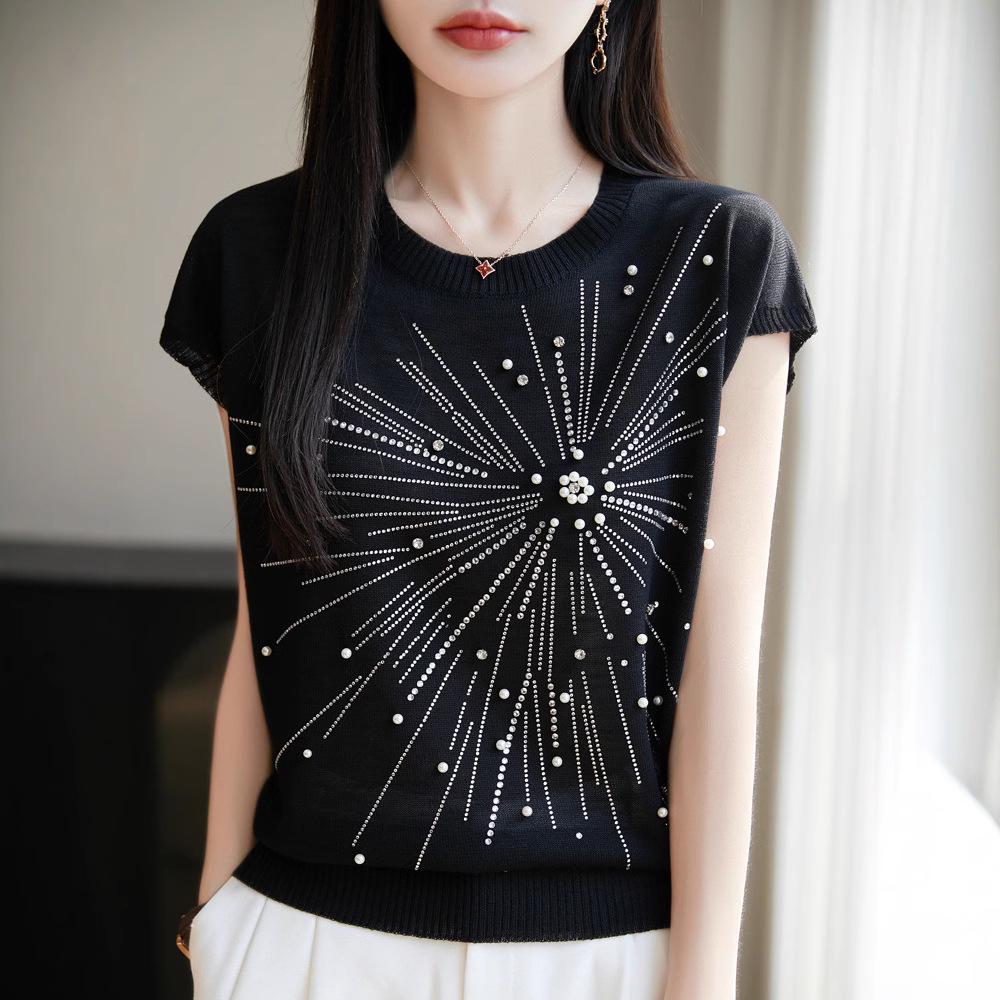 Женская летняя футболка из бамбукового льна с бисером и круглым вырезом — купить товар онлайн с бесплатной доставкой до всему миру!