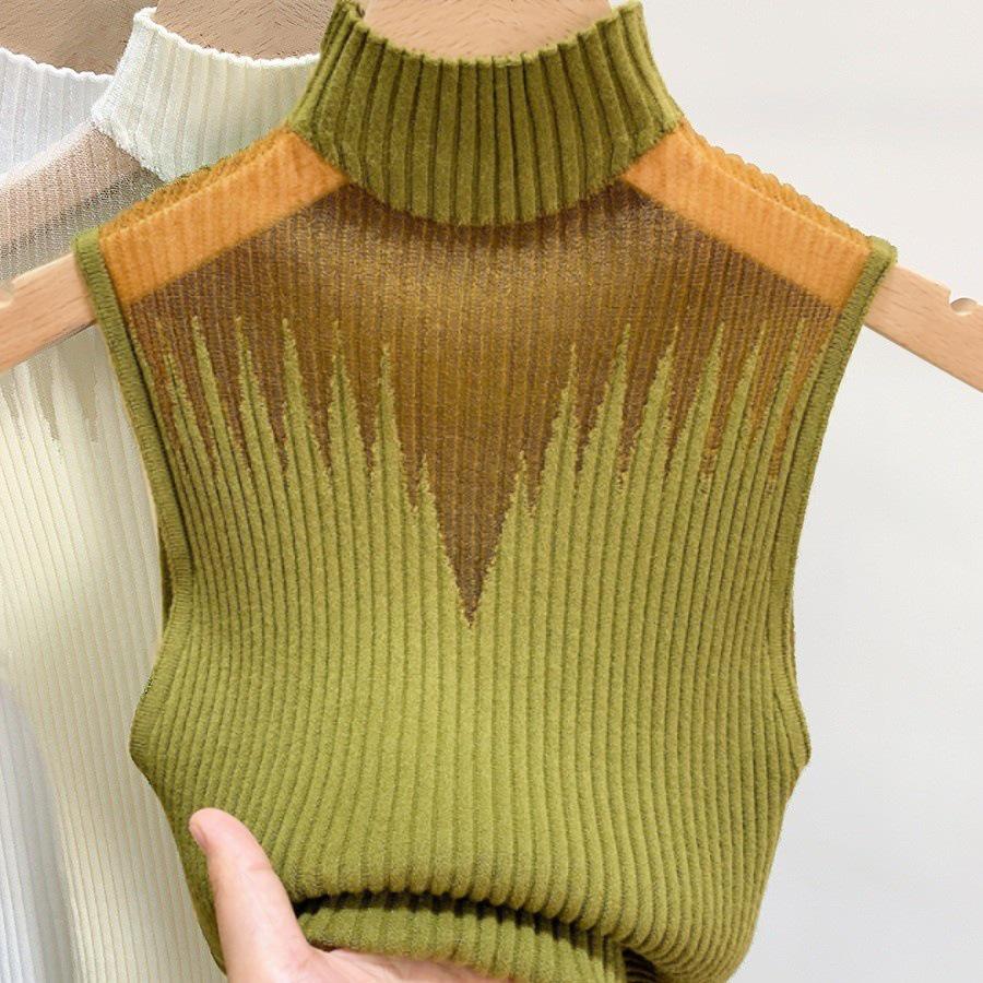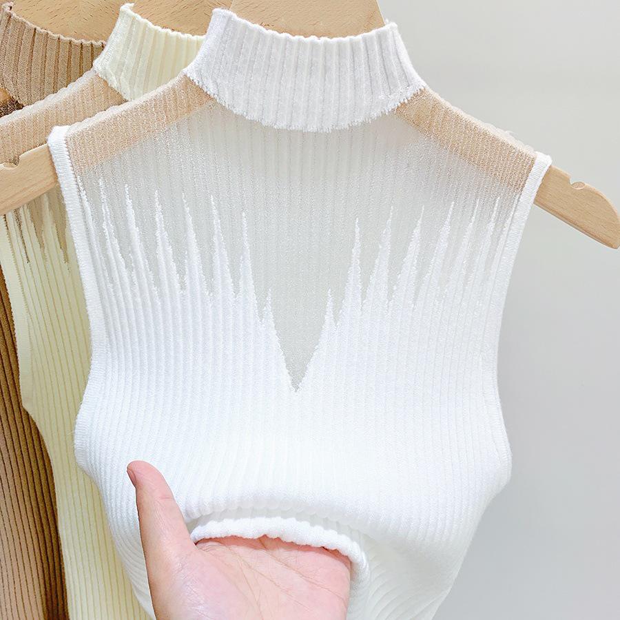 Женский вязаный топ без рукавов с высоким воротом, сетчатый, с вырезами