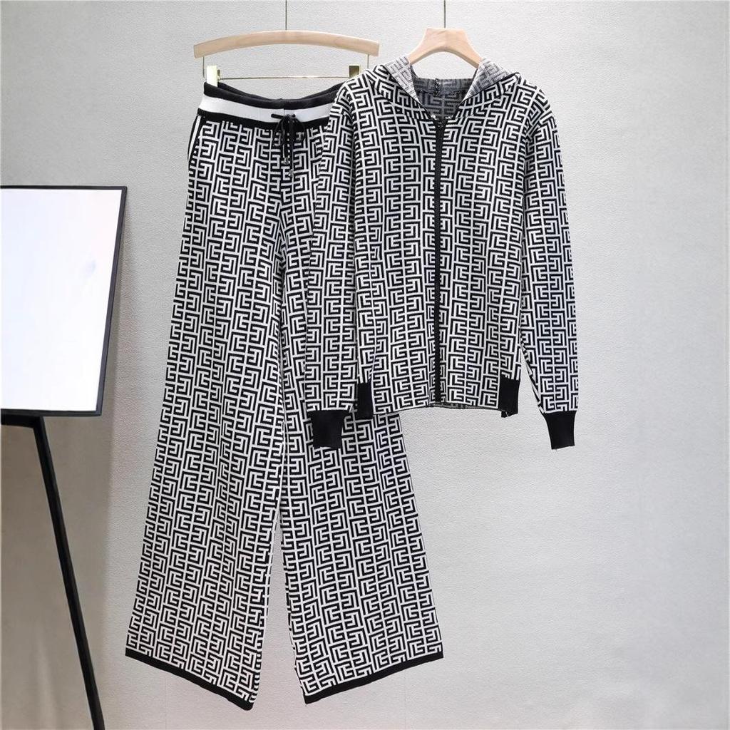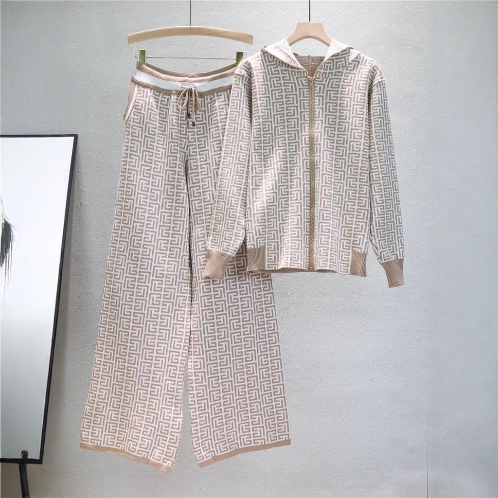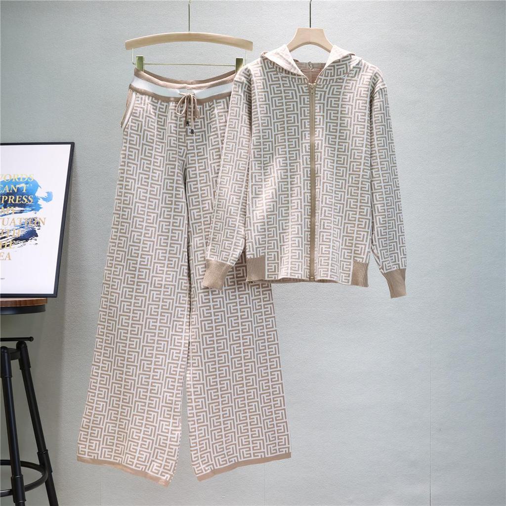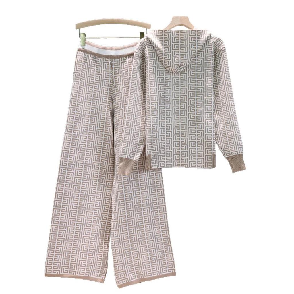 Европейский и американский женский трикотажный костюм-двойка с худи и широкими брюками для весны и осени